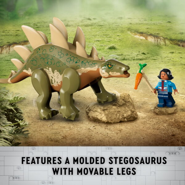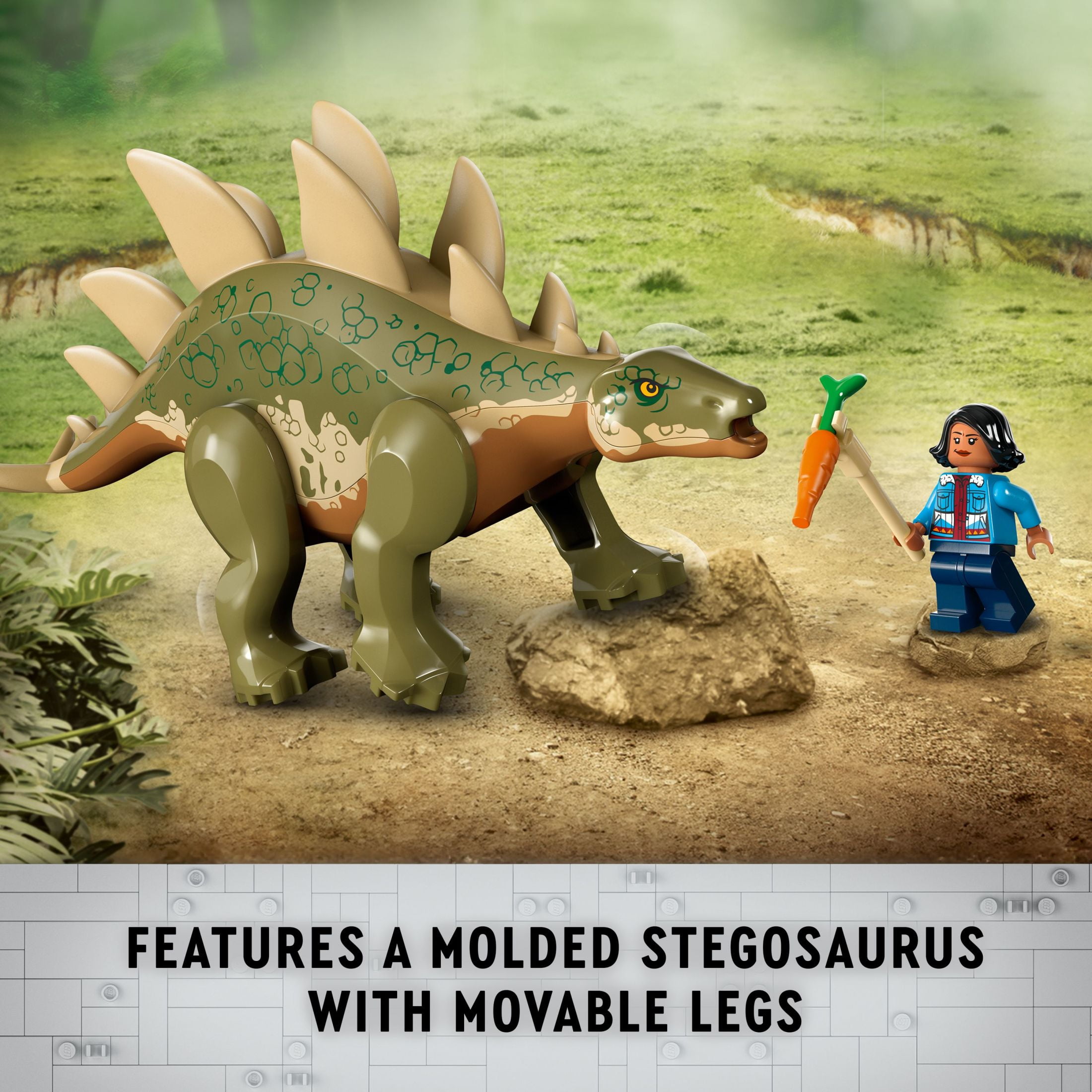 Stegosaurus toy set Treat dinosaur fans ages 6 and up with this detailed Dinosaur Missions: Stegosaurus Discovery building set, made to meet kids passions for dinosaur toys, animals and fun stories Creative adventure toy Features a molded LEGO Stegosaurus with movable legs, a small Velociraptor figure and Ben and Sammy minifigures to spark role play and stories Details for stories The detailed Jurassic World toy includes a tree with a lookout stand and 2 detachable sections, plus an off-roader with a 2-minifigure cab, an opening back and a trailer LEGO set for ages 6 and up Fulfill any kids passion for Jurassic World dinosaur toys and animal adventures with a set that makes an affordable holiday gift or fun birthday gift for 6 year old boys and girls A new way to build The LEGO Builder app guides kids on an intuitive building adventure, letting them save sets, track their progress, zoom in and rotate models in 3D while they build Boost creativity LEGO Jurassic World sets help encourage a kids love of dinosaur toys, animals, adventures and nature, letting them expand their creativity and develop their storytelling skills Dimensions This 420-piece set includes a Stegosaurus toy figure that measures over 4 in. (11 cm) high, 8.5 in. (22 cm) long and 2 in. (5 cm) wide