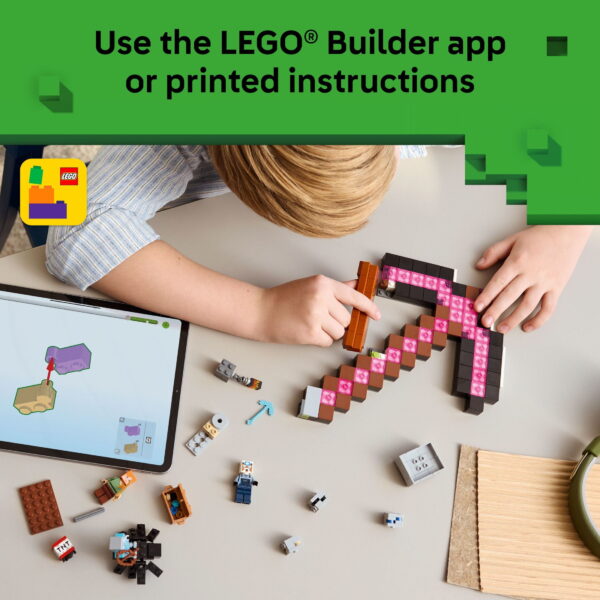 Young explorers 8+ dive into a world of underground adventures with the LEGO Minecraft Pickaxe Mine (21277). Ore extraction, daring battles, and brick-built explosions await kids as they blast through rock walls with a TNT-loaded minecart, fight off a hostile spider jockey, and help Alex, a Miner, and their baby polar bear companion uncover hidden treasures. Perfect for gaming enthusiasts, this interactive LEGO Minecraft building toy lets young builders recreate their favorite video game adventures through hands-on creative play. Parents can help young ones continue the fun with additional Minecraft Lego sets (sold separately) and by accessing the LEGO Builder app, so kids can zoom in and rotate their model in 3D as they build. Contains 530 pieces.