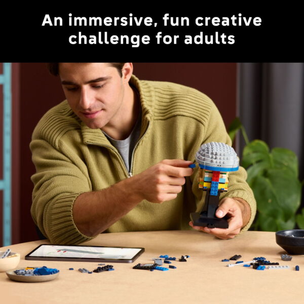 The deadliest bounty hunter in the galaxy is now the centerpiece of your collection with the LEGO Star Wars Jango Fett Helmet (75408). This detailed building set for adults 18+ lets you recreate the iconic helmet worn by the legendary mercenary in Star Wars: Attack of the Clones. As you build, you’ll craft authentic details from the film, including Jango’s distinctive shaped visor and his instantly-recognizable adjustable rangefinder antenna. Relive the epic battles of the Clone Wars as you immerse yourself in this challenging, hands-on project. Enhance your building experience with the LEGO Builder app, which lets you visualize your model in 3D as you build. Once complete, your Jango Fett helmet can be displayed on the buildable stand and accessorized with the included nameplate to become an impressive piece of Star Wars room decor that stands out whether displayed alone or alongside other helmets in the LEGO Star Wars collection (sold separately). This premium collectible makes a perfect gift for adult fans and LEGO enthusiasts who enjoy creative building experiences. Contains 616 pieces.
