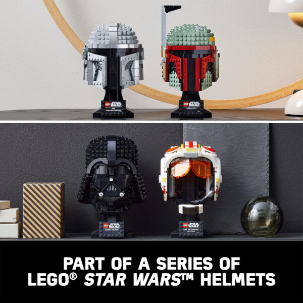 Build a detailed LEGO Star Wars display model of The Mandalorians helmet and pay tribute to the legendary bounty hunter Capture the sheen and replicate iconic features of Mandos helmet and proudly display it on the brick-built stand with nameplate Drum-lacquered LEGO bricks in different shades of grey help you to recreate the metallic look of beskar armor and the contours of the helmet Find step-by-step instructions in the box, so even if you are a newcomer to LEGO sets, you will soon be building with confidence Premium-quality LEGO Star Wars display models make a big visual impact at home or in the office as decorations Explore the full range of LEGO Star Wars buildable model kits to discover a variety of Star Wars Presents or Christmas gift ideas for Men, Women, Moms or Dads Check out other collectible LEGO Star Wars display helmet model sets for adults: 75327 Luke Skywalker Red 5 Helmet and 75343 Dark Trooper Helmet