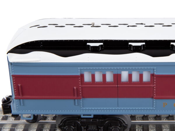 FEATURES: Die-cast metal sprung trucks Operating couplers Interior Illumination Snow covered roof with footprints Dimensions: Length: 12″ PRODUCT SPECIFICATIONS: Gauge: O Gauge Scale Type: Traditional Power: Electric Minimum Curve: O27 PRODUCT NOTIFICATIONS: Lubricate the wheels, axles, and linkage regularly to avoid squeaks and wear Wipe with a soft cloth occasionally after use to keep the wheels free from dirt and grease Recommended for ages 14 and up