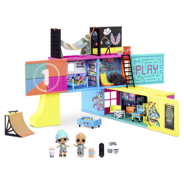 Boy dolls are anatomically correct.Unbox 40+ surprises in the ultimate hangout for L.O.L. Surprise! dolls and boys.Includes 2 exclusive dolls – an L.O.L. Surprise! doll and a Boy doll.7+ Hangout Areas: Game Room, Skateboard Zone, Hammock Patio, Movie Room, Stargazing Space, Bedroom, Kitchen and more! Expands to 3+ feet wide. Shipping containers pop up and fold out to create Clubhouse. When finished playing, fold up and take on-the-go. Unbox furniture including bean bag chair, hammock, arcade games, foosball table, bed, half-pipe and more.