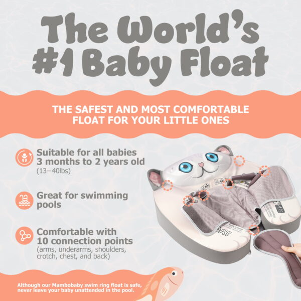 Safety Features and Air-Free Technology: Equipped with a five-way buckle system and a 40 angle for balance, this Mambobaby Float uses foam technology instead of air to eliminate leakage and ensure stability. NOTE: Never leave your child unattended in their float. Adjustable Fit and Versatile Support: Adjustable straps and buckles on this baby float provide a snug fit, while the design supports both breaststroke and backstroke for a variety of swimming activities. Suitable for kids from 3-24 months old (13-40 lbs). Comfort and Sun Protection: Each Mambobaby Pool Float is made with soft, skin-friendly materials for extra comfort, while the removable UPF 50+ sun canopy shields your baby from harmful UV rays. Comfort and Sun Protection: Each Mambobaby Pool Float is made with soft, skin-friendly materials for extra comfort, while the removable UPF 50+ sun canopy shields your baby from harmful UV rays. Innovative Baby Float: The Mambobaby Innovative Explorer combines airless safety technology with sensory baby toys so you can confidently and easily introduce your little one to the water. Durable, Lightweight, Portable: Crafted with long-lasting materials, these pool floaties are easy to carry and resistant to wear ideal for poolside fun, family vacations, and swimming lessons. Adorable and Engaging Design: This float features an adorable cat design with hanging fish pool toys for kids to make swim time more exciting and engaging. Highly Rated Floaties: Trusted by millions of families around the world, the Mambobaby Innovative Explorer Baby Floatie is a top choice for infant swimming and water safety. Mambobaby Promise: Known by parents globally for our high-quality pool floats, we promise to deliver innovative products designed to enhance water safety and entertainment for your loved ones. Pool float baby for floaties – months Mambobaby floatie floating babies inflatable floats floaty with canopy swimming infant Mambobaby self inflating swim bath toys mambo fun month year old floater water girl infants floaties.