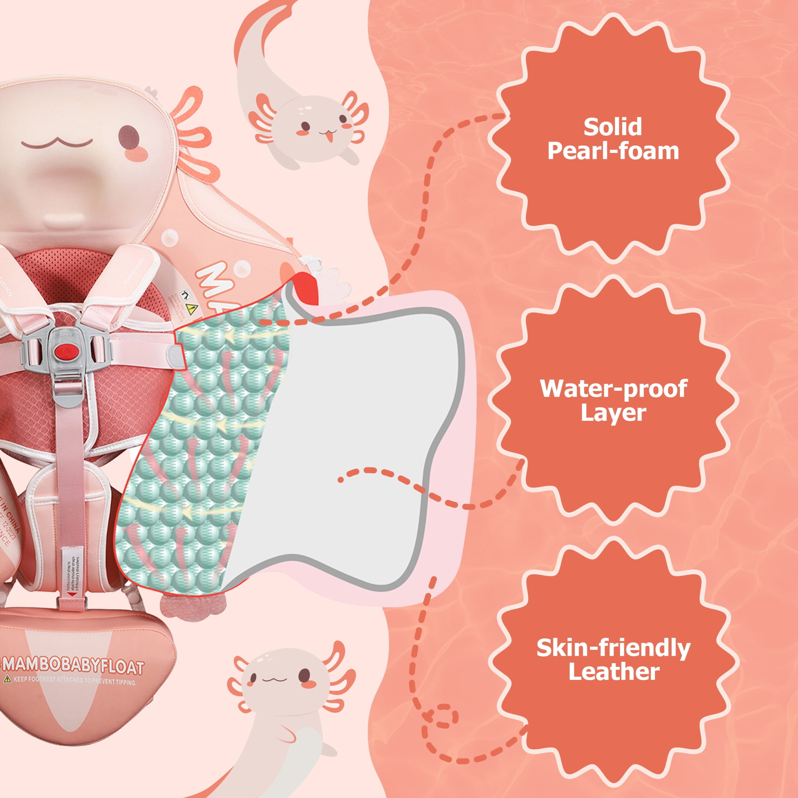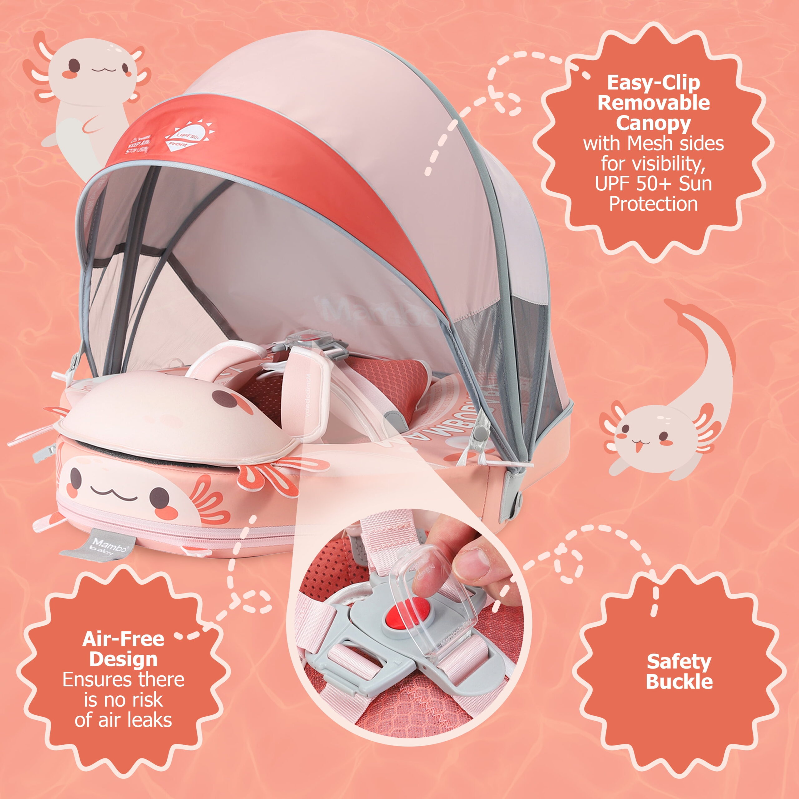 Introducing the Mambobaby Sunny Navigator Baby Float with Canopy a perfect blend of safety, comfort, and fun. Specially designed for little ones, this baby swimming float provides a secure and enjoyable water experience with upgraded safety features for peace of mind for parents. Equipped with a five-way buckle system and a 40 angle for optimal balance, the Mambo Baby Float offers exceptional stability to allow your baby to float comfortably. The floats foam inner liner technology eliminates the air leakage risk of inflatables, making it safer and more reliable than traditional inflatable pool float products. Protect your babys sensitive skin with the infant floatie made from soft and skin-friendly materials plus a removable footrest and removable UPF 50+ sun canopy that provides extra protection from direct sunlight. With adjustable straps and buckles for a secure and customized fit, this infant swim float supports both breaststroke and backstroke, perfect for your babys first swimming lessons. These baby floaties are also lightweight and portable, making it easy to carry along for family pool time, beach vacations, and even baby spas. Featuring an adorable and vibrant axolotl design, the Mambobaby Float with Canopy is sure to delight your little one and make every swim more enjoyable. Highly rated by families worldwide, you can trust our baby swimming pool floats to give the perfect start for a fun, safe, and memorable water experience. Featuring an adorable and vibrant axolotl design, the Mambobaby Float with Canopy is sure to delight your little one and make every swim more enjoyable. Highly rated by families worldwide, you can trust our baby swimming pool floats to give the perfect start for a fun, safe, and memorable water experience.
