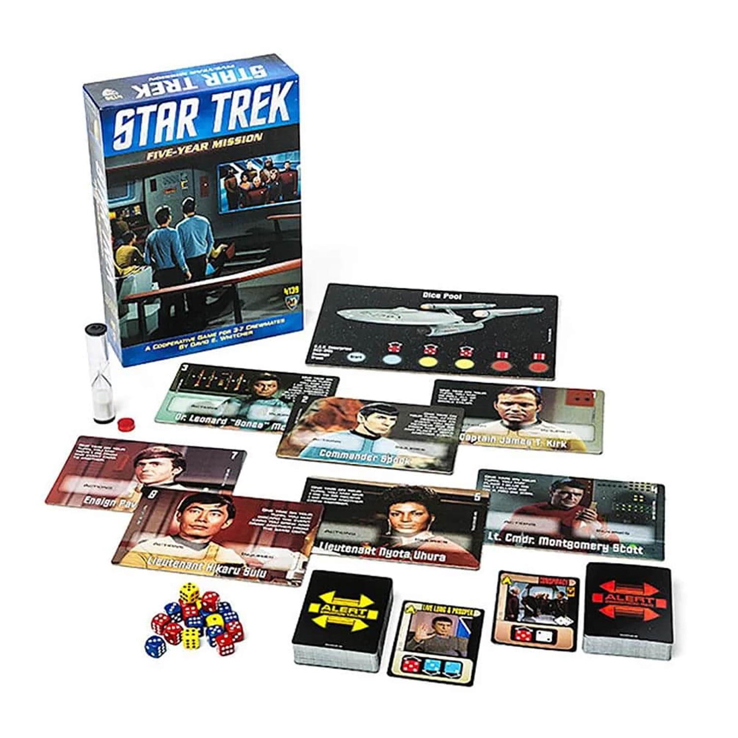 You are about to begin your 5-year mission aboard the USS Enterprise. But which one? You can crew the classic Enterprise NCC-1701 or the next generation NCC 1701-D. ALERT! You and your fellow crewmates must cooperate to resolve dangerous situations that threaten to destroy your ship. If you fail, you all lose. Solving threats is the way you score points for your crew and win the game. Each crewmate has a unique ability. These abilities can help the team solve alerts. Use your skills wisely to give your crew the best chance at success. So, which is the crew for you-The Original Series, or the Next Generation?.
