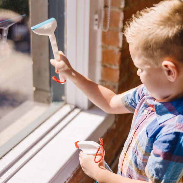 7-piece cleaning play set for pretend play housekeeping Includes solid wood handled broom, mop, and duster, durable dustpan, squeegee, and spray bottle Pieces hang neatly on sturdy wooden stand Skills at Play: movement, sensory development Makes a great gift for girls and boys, ages 3 to 6, for hands-on, screen-free play; product made with FSC-certified materials that support responsible forestry; applies to new inventory only (FSC C156584)