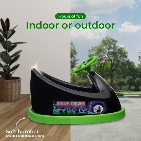 Introducing the Monster Jam 6V RC Bumper Car a roaring ride that propels your little thrill-seeker into a world of adrenaline-pumping adventures with the fierce Monster Jam spirit! This electrifying bumper car, adorned with the monstrous Monster Jam license, combines heart-thumping excitement with safety, making it a treasured ride for both indoor and outdoor action. The bold aesthetics, inspired by the wild energy of Monster Jam, add a dash of daring to their rides. Whether they are rampaging through the living room or cruising in the backyard, its robust construction ensures a smooth and secure ride. The remote control feature gives you the reins to guide their wild rides, ensuring their safety while they revel in the thrill of the chase. This isn’t just a bumper car; it’s a chariot of fearless fun, catapulting your child into a realm of wild excitement and monstrous adventures! Whether it’s a heart-thumping bumping session indoors or a fearless adventure outdoors, the Monster Jam 6V RC Bumper Car is your child’s passport to a world brimming with boldness, excitement, and monstrous Monster Jam action!