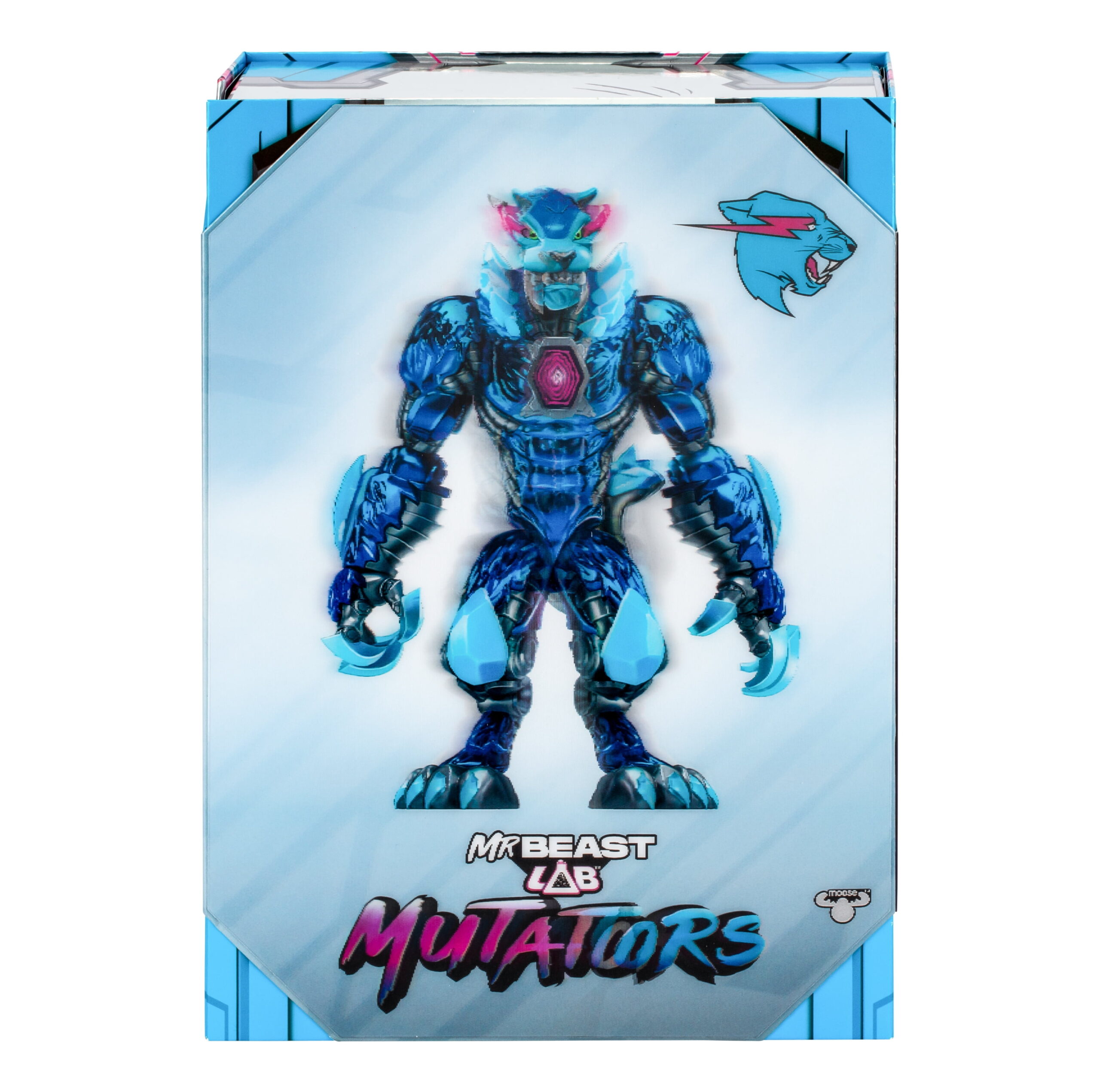 Limited-Edition Description : After the recent launch of MrBeast Lab Mutators, the wildest experiment from the world of MrBeast Lab, comes the limited-edition Alpha Panther Mutator. With only 1250 available at Walmart, this new Mutator features an exclusive blue chrome finish, glow-in-the-dark crystals, stands at five-and-a-half inches tall and boasts more than 20 points of articulation. Designed and styled to represent MrBeasts iconic panther logo, its unlike any other in the MrBeast Lab Mutator line. Plus, the exclusive Alpha Panther has a completely new and elevated unboxing experience. With premium packaging touting restricted access, fans will remove an exterior sleeve before unfolding the lab-themed box to unveil the limited-edition Alpha Panther inside.