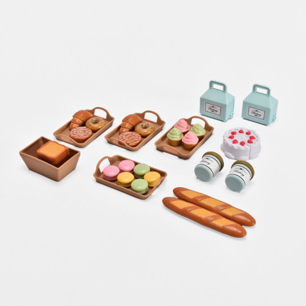 Everything a bakery-loving little one needs for their 18-inch doll! Includes trays filled with wonderful baked goods: baguettes, bagels and rye bread. As well as pastry boxes that can be filled with colorful cupcakes to take on the go from the bakery 53-piece set includes: 1 x Rye Bread, 2 x Bagels, 2 x Baguettes, 2 x Croissants, 1 x Cinnamon Rolls, 4 x Cup Cake Tops, 4 x Cup Cake Base, 1 x Cake, 6 x Macaroons, 2 x Jams, 4 x Trays (A), 1 x Tray (B), 1 x Sign, 1 x Welcome Board, 1 x Tongs Holder, 3 x Tongs, 1 x Cashier, 1 x Counter, 1 x Pastry Case, 3 x Lilacs, 6 x Pastry Boxes, 1 x Rolling Cart, 1 x Map, 1 x A5 Sticker For 18 dolls Part of the My Life As Doll Collection Exclusive to Walmart For children aged 5 and up Product dimensions: 22” x 21” x 8.5” Requires batteries (included)