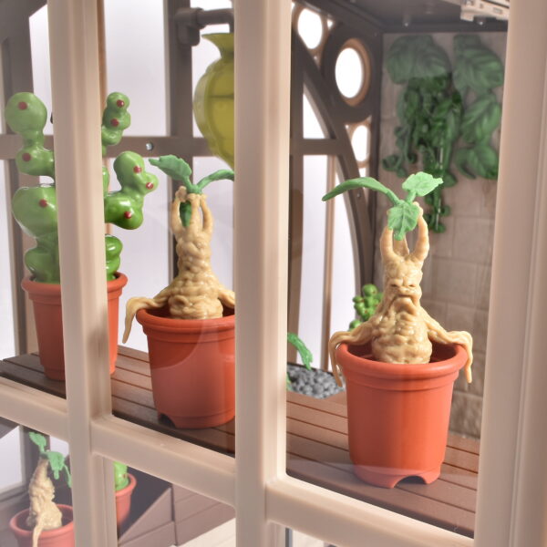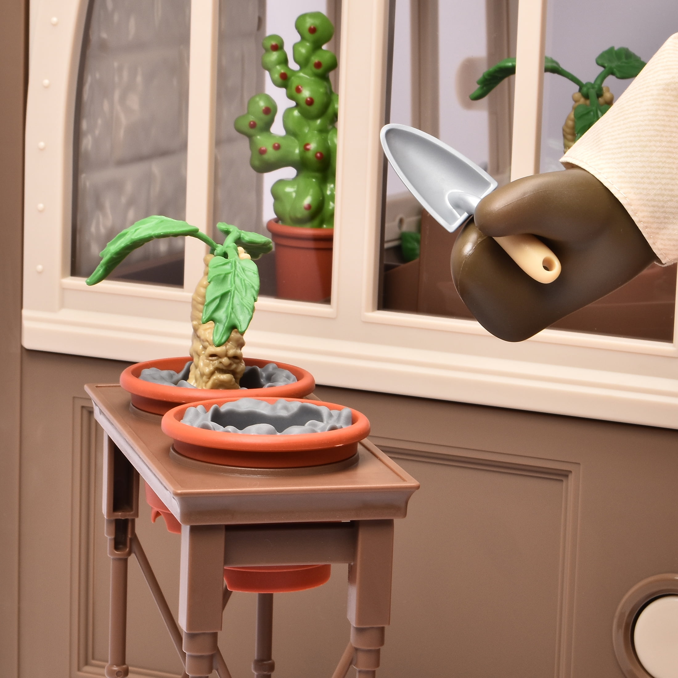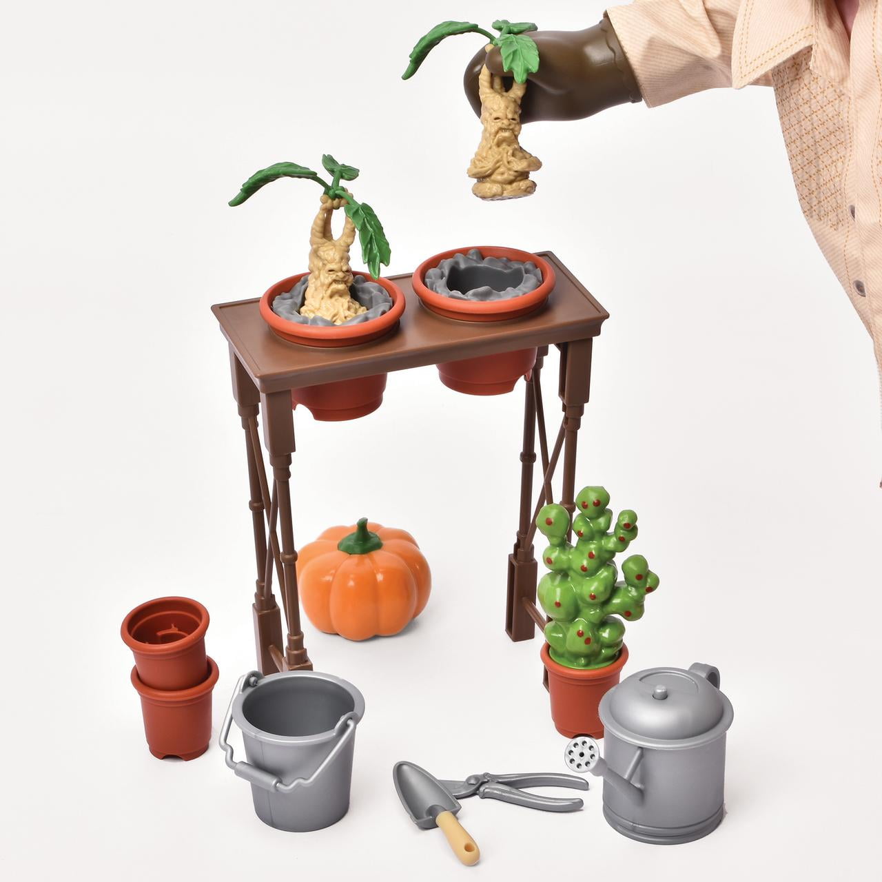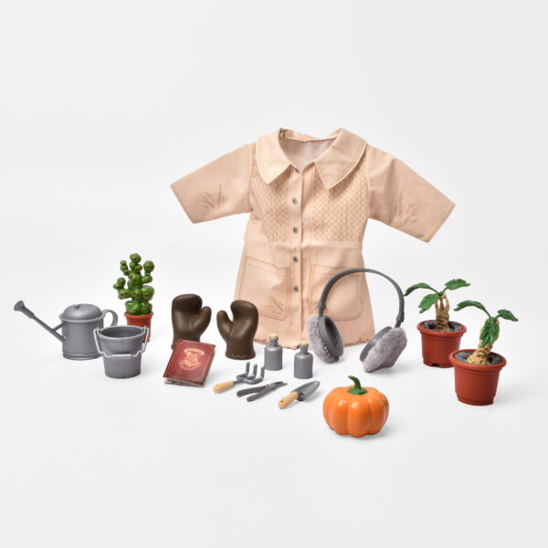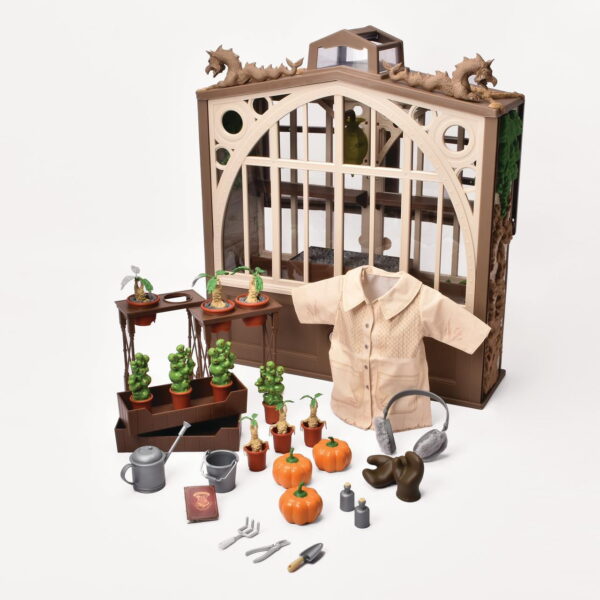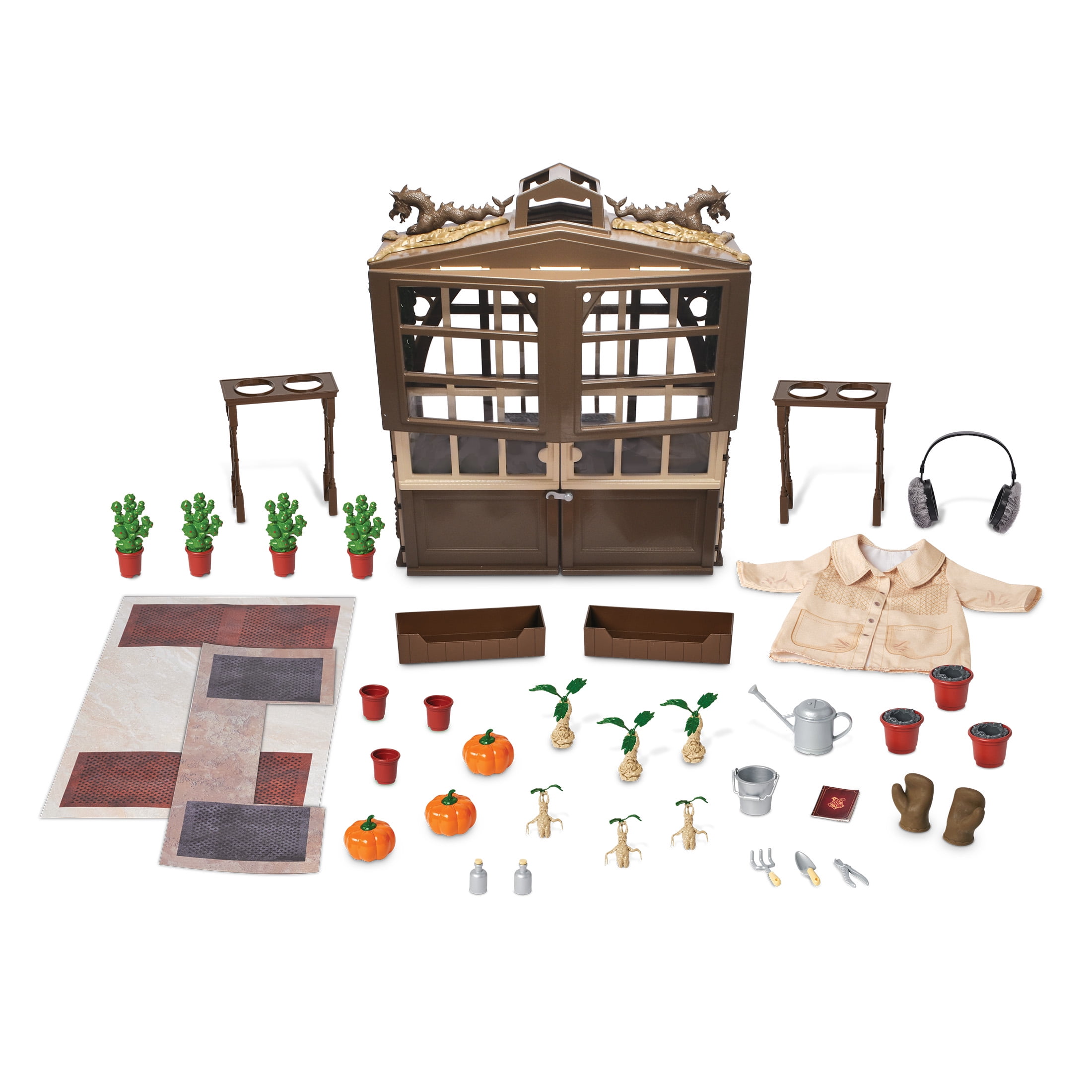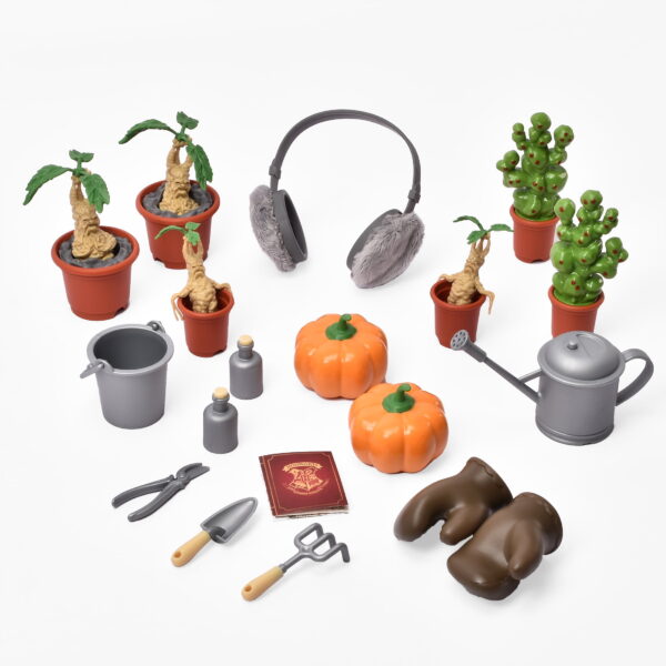 This Harry Potter Wizarding World Herbology Set provides all tools needed to keep your Mandrakes from screaming. From a watering pot with sound effects to different sized pots and wooden boxes and tables to fully design your herbology. 41-piece set includes: 2 x Bottles, 1 x Shovel Set, 1 x Water Bottle, 1 x Bucket, 3 x Pot (Large), 7 x Pot (Small), 1 x Gloves, 2 x Wooden Box, 3 x Mandrake (L), 3 x Mandrake (S), 4 x Mimbulus mimbletonia, 3 x Pumpkin, 2 x DIY Plant Tables, 1 x Smock, 1 x Earmuff, 1 x Textbook, 1 x Floor map (1), 1 x Floor map (2) For 18 dolls Part of the My Life As Doll Collection Exclusive to Walmart For children aged 5 and up Product dimensions: 23.6” x 21.3” x 9.16” Requires batteries (included)