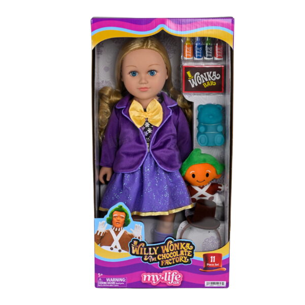My Life As Willy Wonka Posable 18-inch Doll, Medium Blonde Hair, Blue Eyes One part of the entire My Life As doll collection. Perfect as a birthday or holiday gift, or just because! Rooted hair can be brushed and styled. Bright eyes open and close when the doll is propped up or laid down. Fully posable with arms and legs that move. Fits most 18-inch clothing and accessories (additional clothing and accessories sold separately). Exclusive to Walmart. Clean with a damp cloth for best care. Recommended for children ages 5 and up.