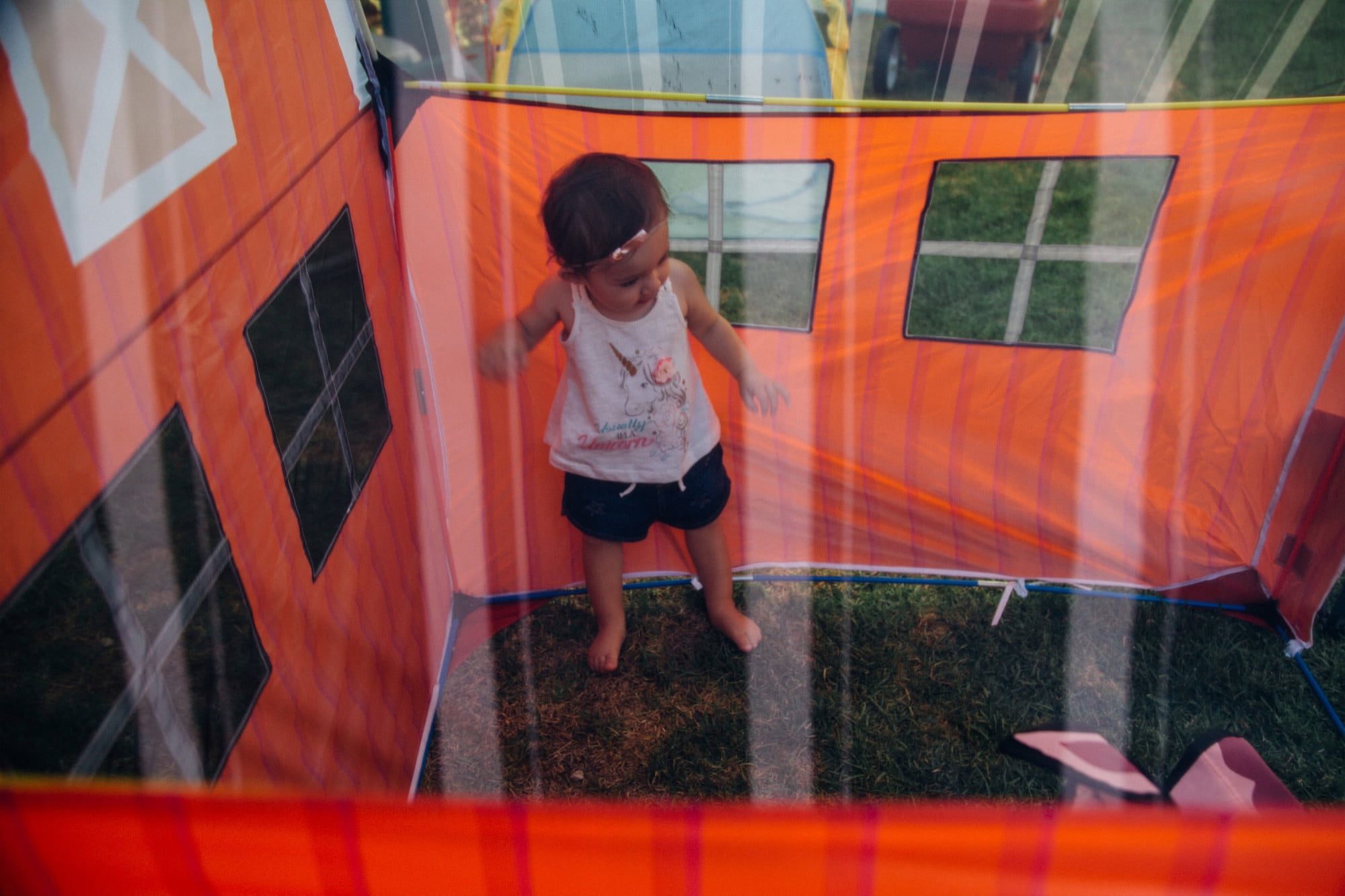 Cows and horses and pigs…oh my! Our Barnyard Playhouse is large enough to easily accommodate three or more of your child’s favorite farmyard friends as they tend to the barn. Featuring high-quality 190T Denier polyester taffeta and a realistic barn shape, this product is sure to hold up to countless hours of play! This playhouse is constructed of G3 fiberglass “super poles” that not only ensure safety and security but are also color-coded for quick and simple set-up. Since safety is of the utmost importance at the barn, this playhouse comes with radius cut hook and loop fasteners to prevent cuts and scrapes. Your little rancher will enjoy adventures galore in the barn as the No-See-Um mesh keeps the farm animals in and the pesky bugs out. No need to “hold your horses,” the perfect barn is here!