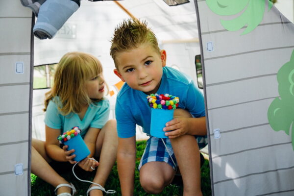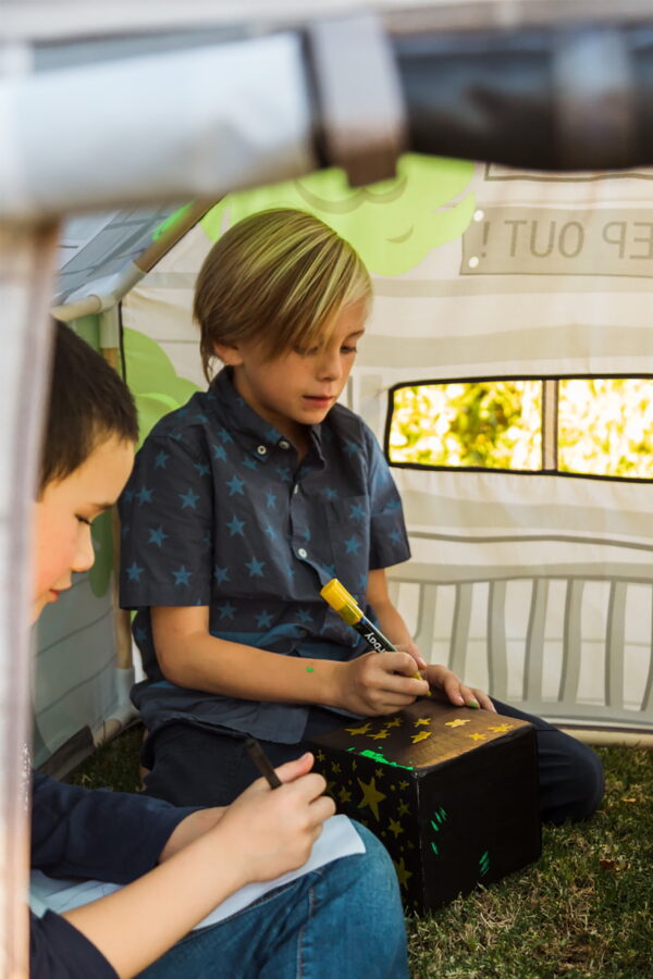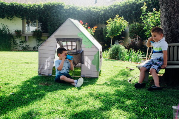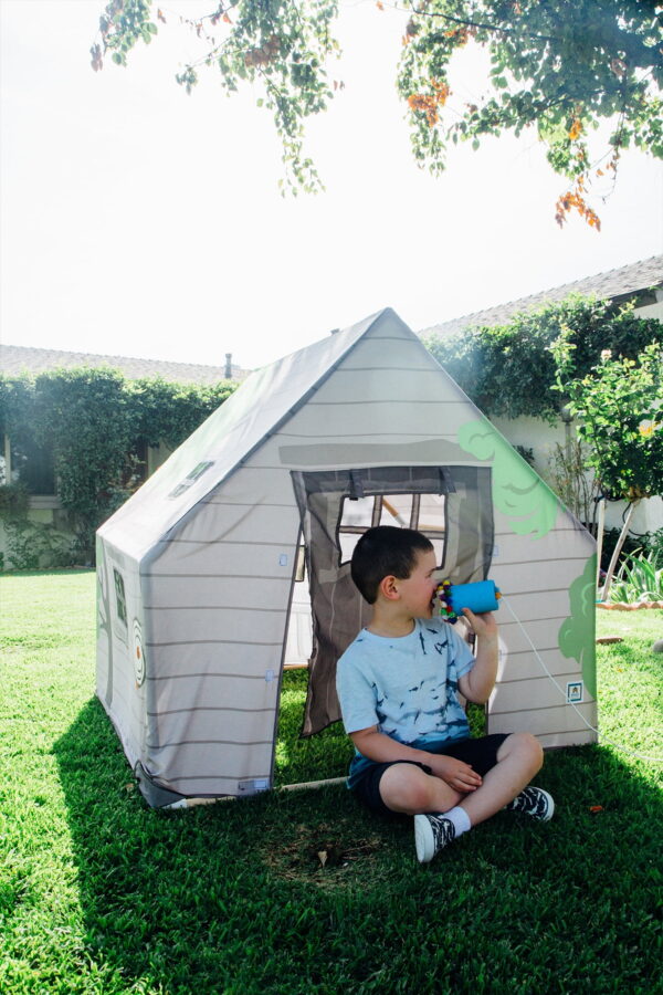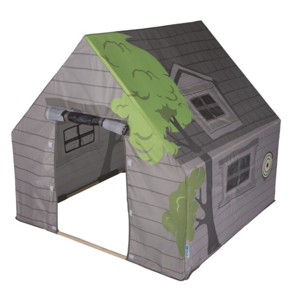 Take the tree house play tent indoors or outdoors! With sturdy wood poles, this Tree House Hide-Away is the perfect escape. It is spacious and has adorable graphics that encourages your child to use their imagination. There is no floor attached, so your child may place their favorite blanket beneath it. There are mesh windows for added air ventilation as well as a roll up door. Grab a sleeping bag and your child can even make the tree house their own place to read, draw, or sleep!