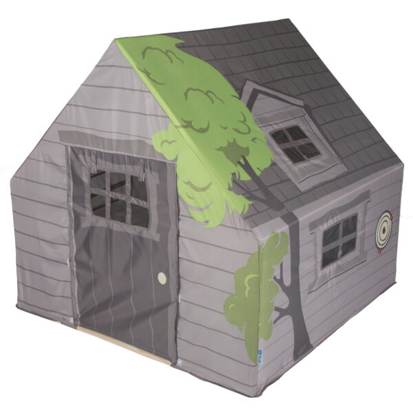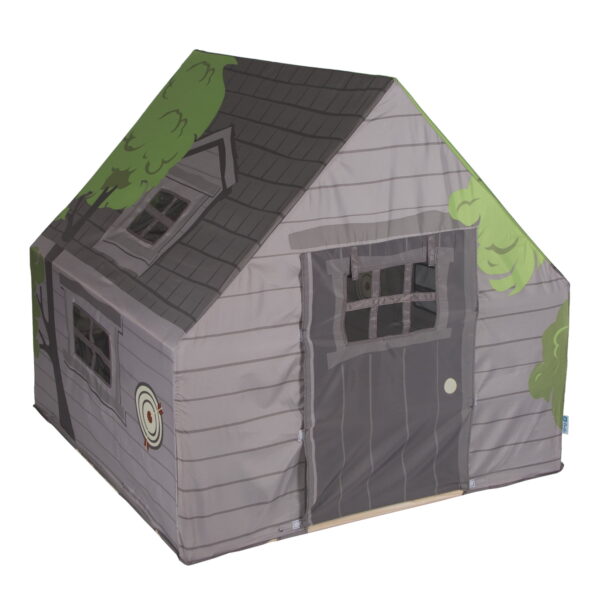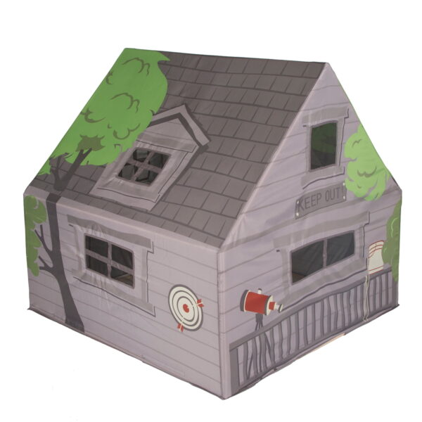 Pacific Play Tents Tree House Hide-Away Tent will stimulate your child’s imagination with it’s great graphics and cabin like exterior This tent features a roll-up door and mesh windows for ventilation and easy viewing Made of poly-cotton canvas with wood poles for added stability Size: 43″ x 43″ x 45″ high Includes a carry bag.