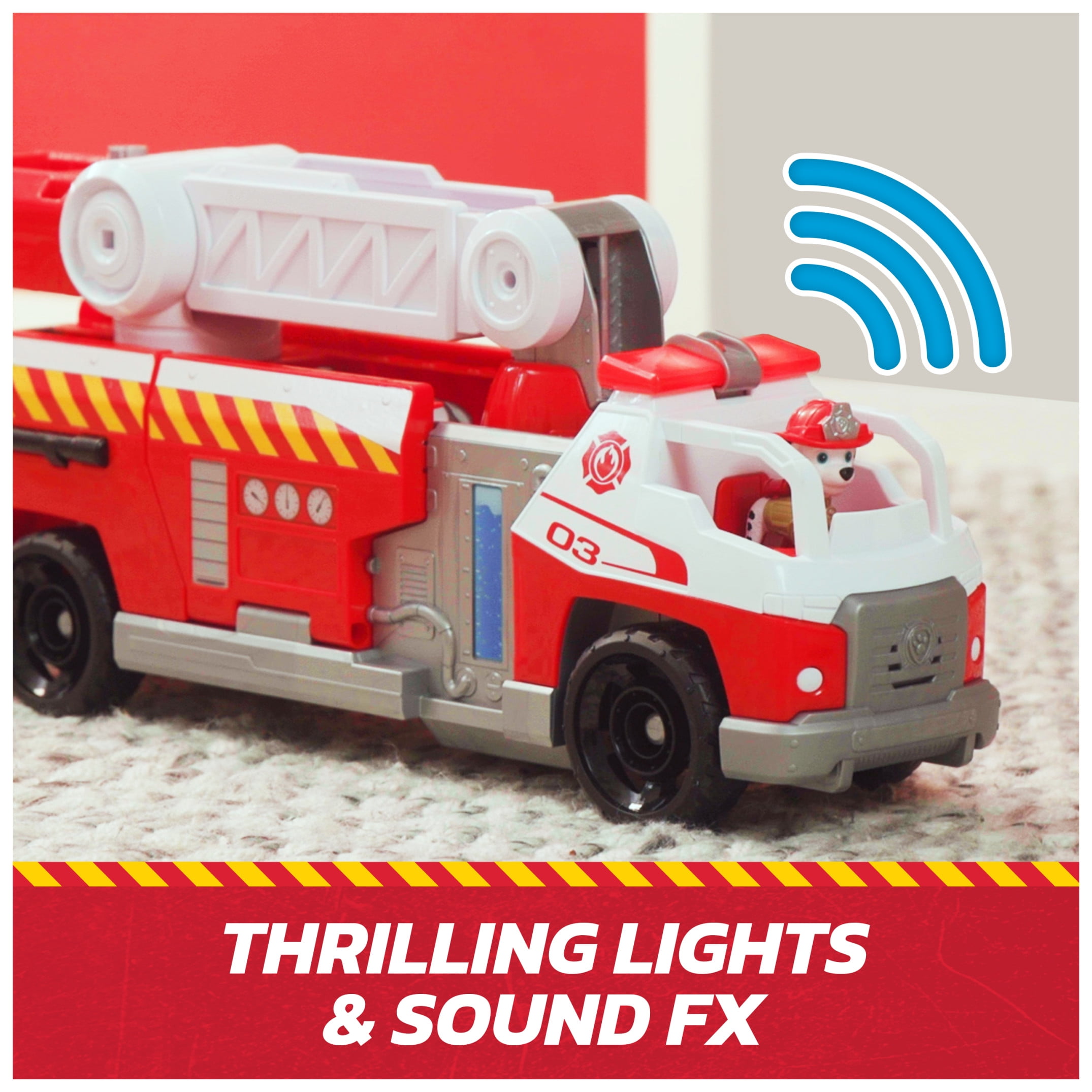 Exciting Adventures Await: The Rapid Reload Fire Truck is 20 inches long and 9 inches tall, with thrilling lights & sound effects, and a movable rescue ladder for thrilling pretend play action Mission Ready: Featuring a quick-fire projectile launcher that holds 5 projectiles, & a rapid reload feature holding 5 more. Rotate the launcher to unleash 10 projectiles consecutively & save the day Imagination Ignited: Kids will love using the firetruck’s movable ladder & rescue arm, then launching Marshall in a mini rescue vehicle that comes from inside the truck, just like in the show PAWsome Gifts for Kids: When buying toys for ages 2-4, PAW preschool toys & toddler toys are toys for girls & boys who love toy cars & plushies, as alternatives to dolls, dinosaur toys or a train set Collect Them All: Expand your collection of PAW Patrol toys for kids with Rescue Wheels toy trucks, PAW Patrol movie toys, dragon toys, stuffed animals, toy figures & playsets (each sold separately) Includes: 1 Firetruck, 1 Figure, 10 Projectiles, 1 Mini Vehicle, 1 Heat Scanner, 1 Crane Arm WARNING: CHOKING HAZARD – Small parts. Not for children under 3 years. Covered by the Spin Master Care Commitment. If you have a problem with a Spin Master product that you purchased from an authorized seller, well resolve it! Because Spin Master is unable to control the quality of products sold by unauthorized sellers, unless otherwise prohibited by law, the Care Commitment is not available for products purchased from unauthorized sellers. The Care Commitment is limited to the original end-user purchaser. You may also be required to provide proof of purchase and/or a picture of your product to Spin Master to verify eligibility. Spin Master reserves the right to verify information, require a valid proof of purchase, and to deny request in its discretion