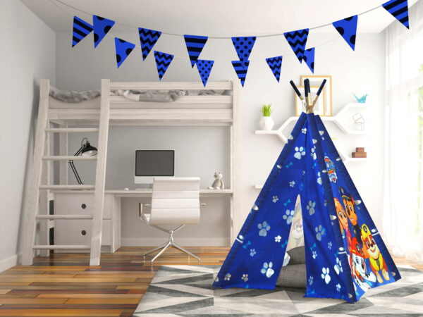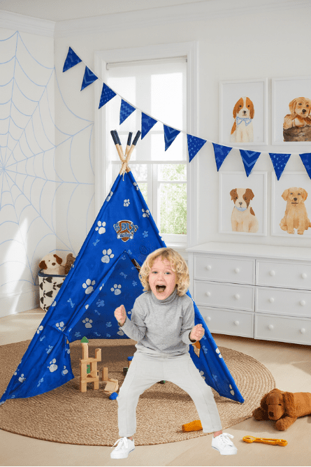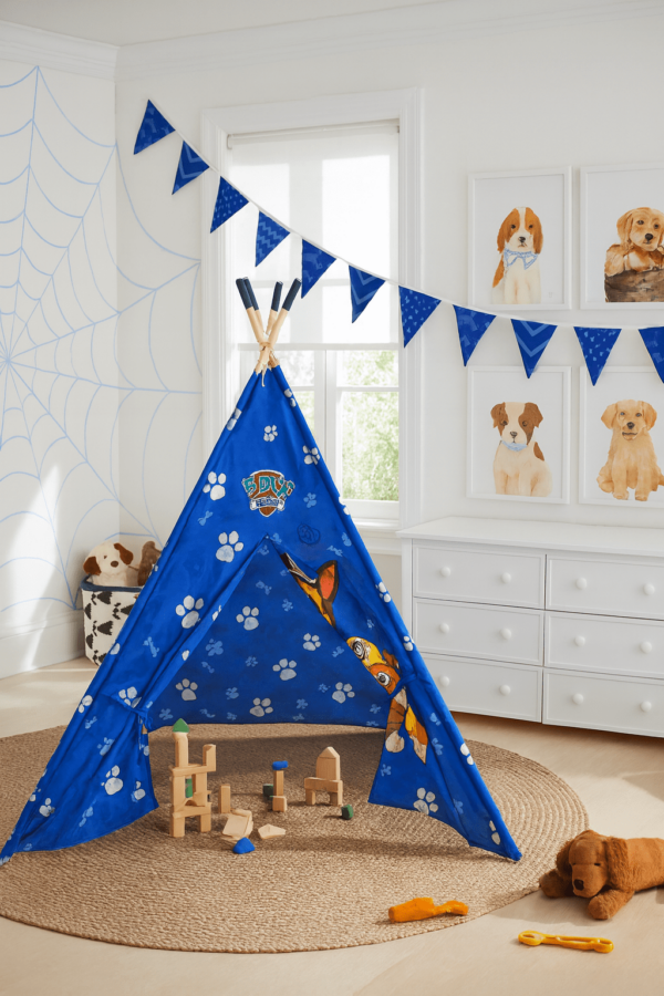 Your child will have the best slumber party with this Paw Patrol Teepe Play Tent. The Bonus Carrying Bag is an easy fit, making it easy for travel. The Star Wars BB8 Teepee Play Tent measures 52″ H x 58″ W x 58″ L with ample room your little one to snuggle up into. This tent is made of polyester and genuine wooden sticks to hold the tent up. Our Teepee Tents are available in other prints as well.
