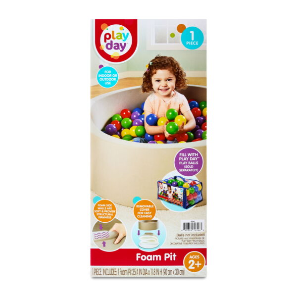 Play Day Foam Pit, 35″ x 13″ Soft, cushioned sides for safe and comfortable play Measures approximately 35″ in diameter and 12″ high Perfect for filling with Play Day Play Balls (sold separately) Encourages active play, gross motor skills, and sensory development Lightweight and easy to set up indoors or outdoors Ideal for toddlers ages 2 and up