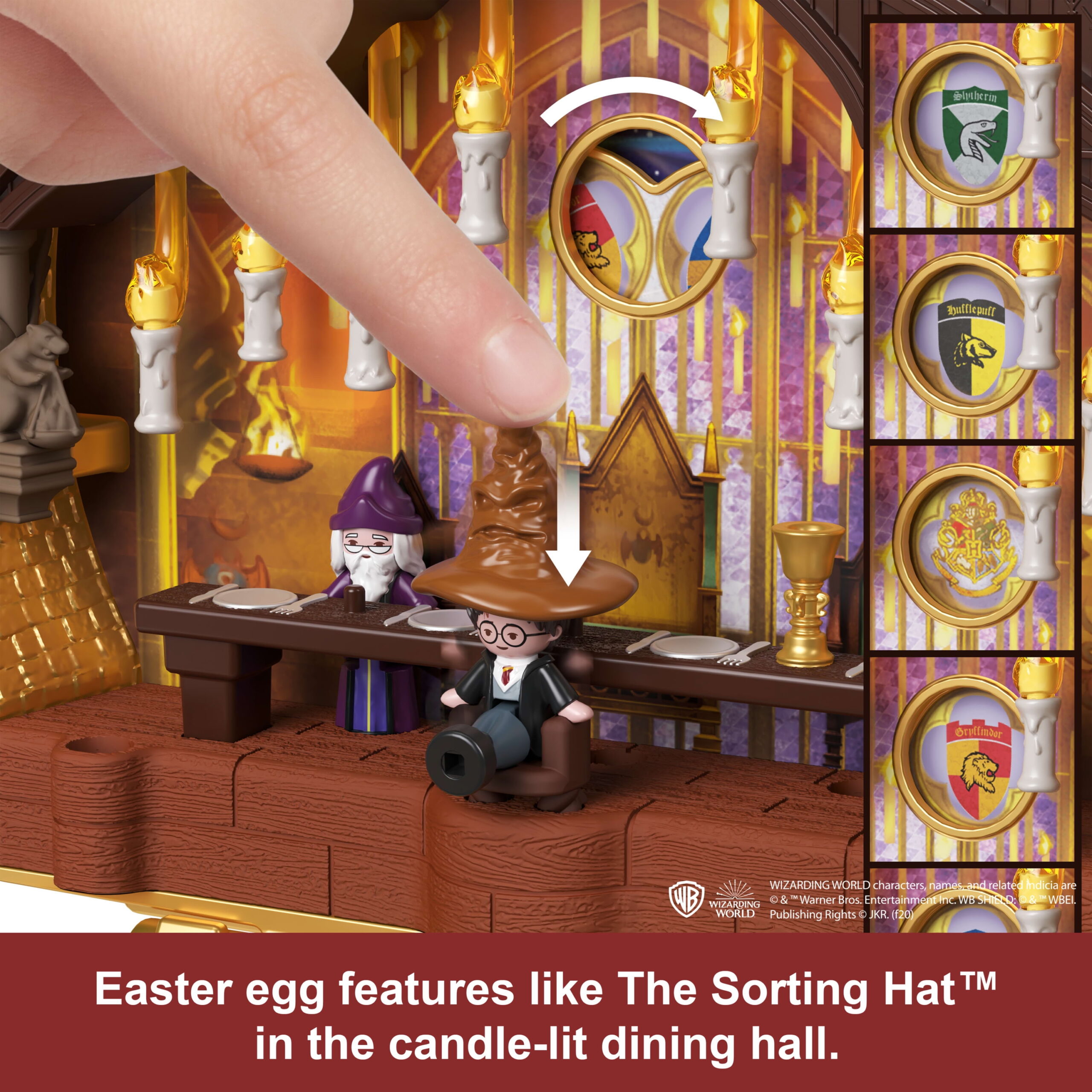 Polly Pocket brings the beloved story of Harry Potter to life in micro form! The 3-D Hogwarts exterior opens to reveal four iconic scenes from the first movie, the Sorcerer’s Stone. Fans can recreate the journey to Hogwarts with Harry Potter, Ron, and Hermione at King’s Cross station. The eleven accessories and fun features offer Easter egg details and play and display moments that capture popular scenes: use the sorting hat in the great hall or have a feast with Professor Dumbledore and Professor McGonagall. Don’t forget Hedwig! This collectible compact is ideal for Harry Potter and Polly Pocket fans alike. Colors and decorations may vary.