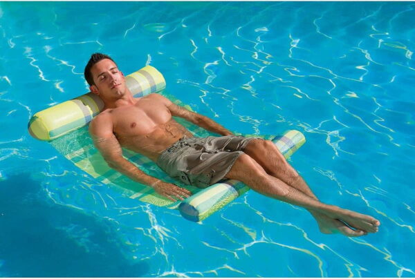 Poolmaster Water Hammock, Xtra Large: For all-day lounging in the water, semi-submerged for cooling comfort Oversized hammock provides plenty of width and length lounging surface with neck and leg support All-weather material for durability and durable 12-gauge vinyl inserts for neck and leg support 54″ x 32″ Recommended for adults