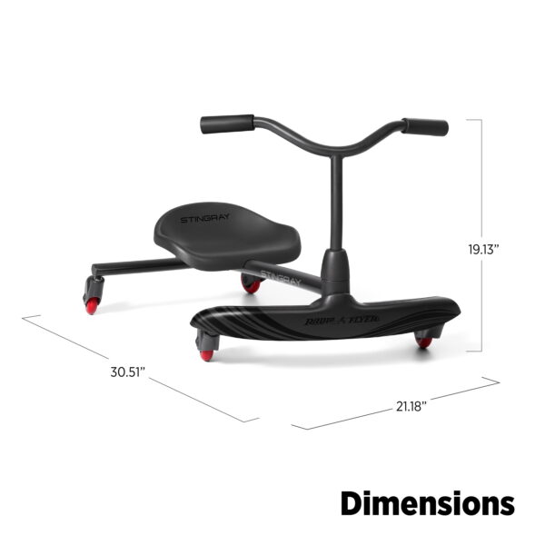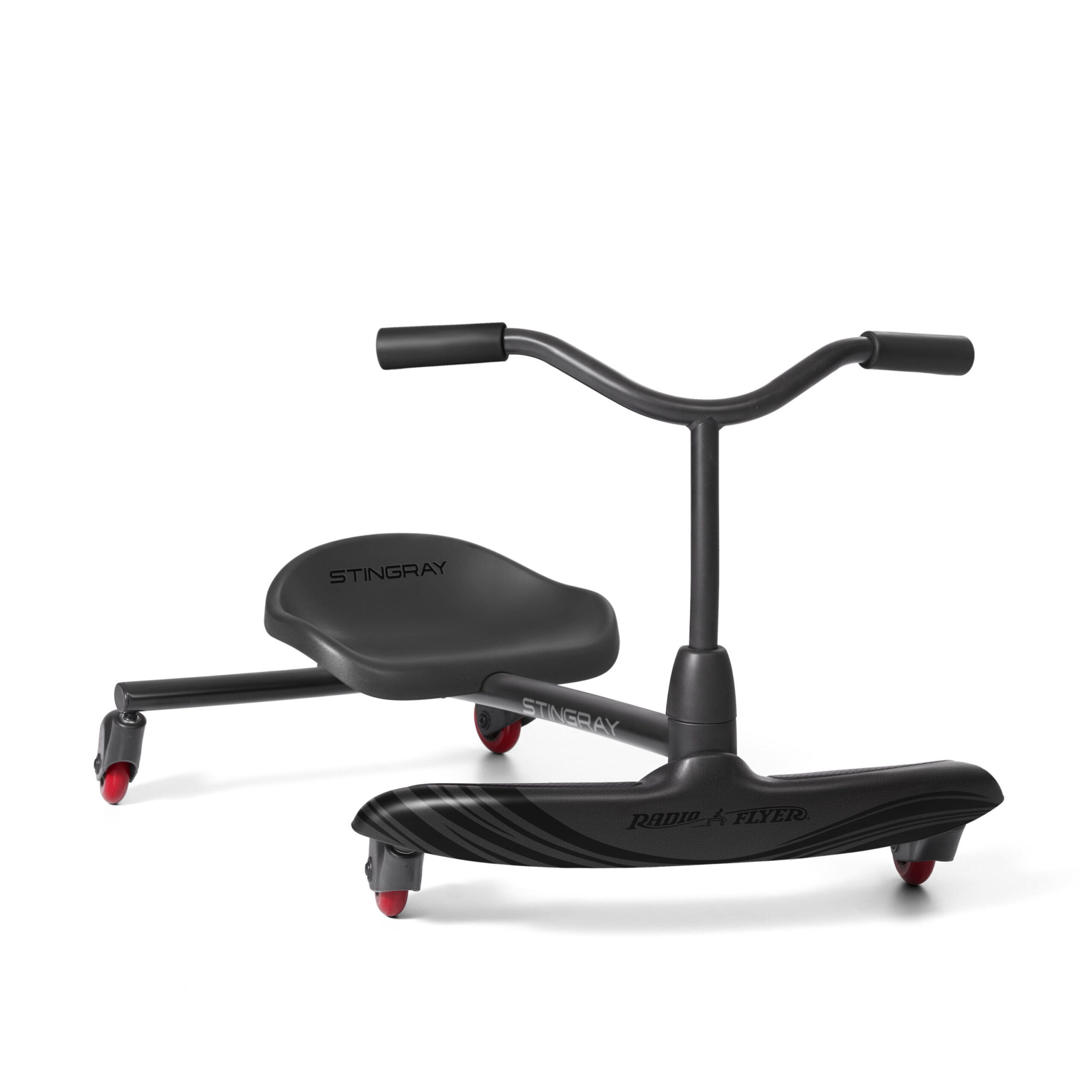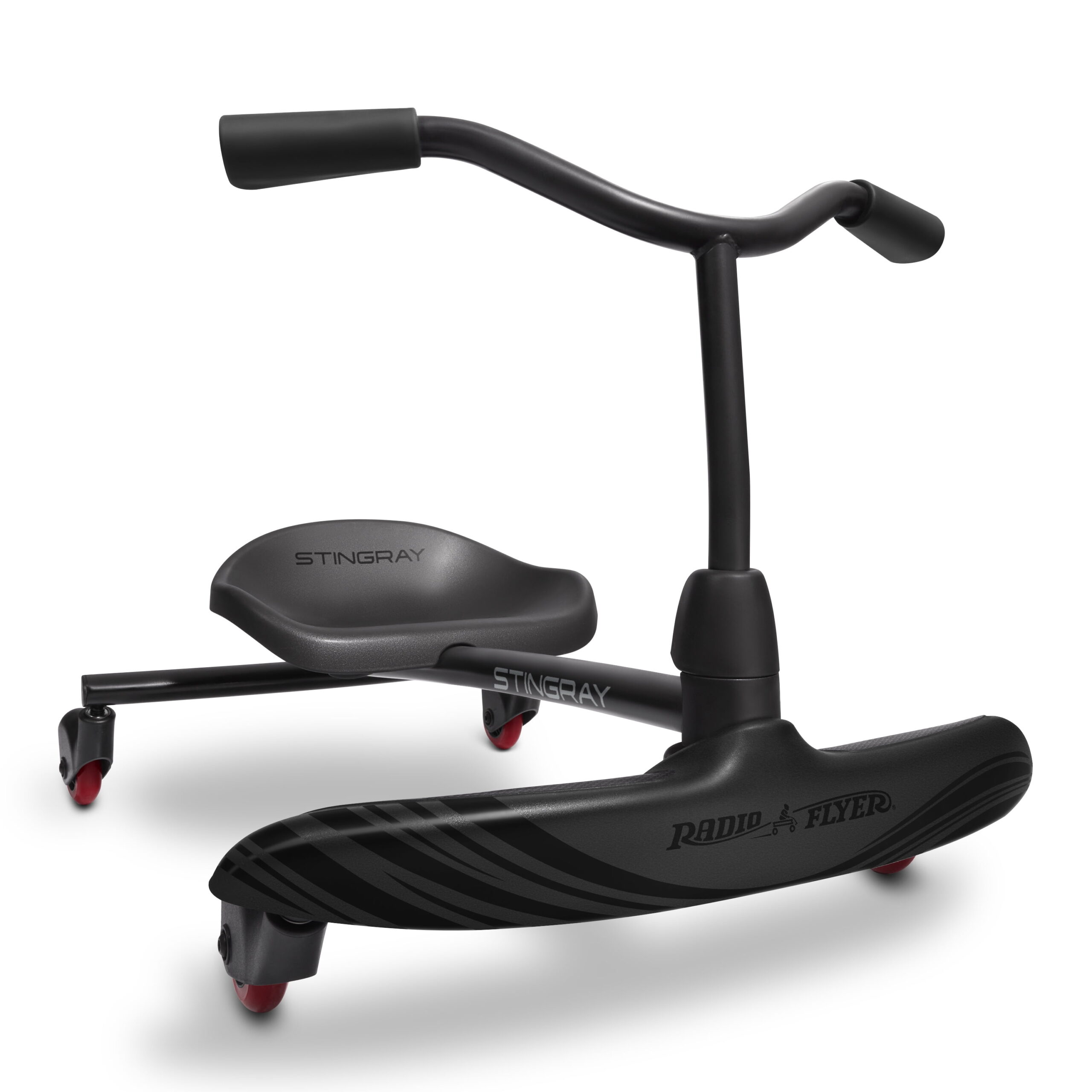 Radio Flyers Stingray amps up outdoor fun with 360 spins and smooth gliding. The four caster wheels provide stability and allow 360 drifting. Kids simply steer with their hands and feet! With an adjustable seat and solid steel frame with grip tape, the Stingray offers dynamic outdoor fun for years to come! Recommended for boys and girls ages 3 8 years old. Gender neutral design for all kids to enjoy! Maximum weight capacity 81 lbs.