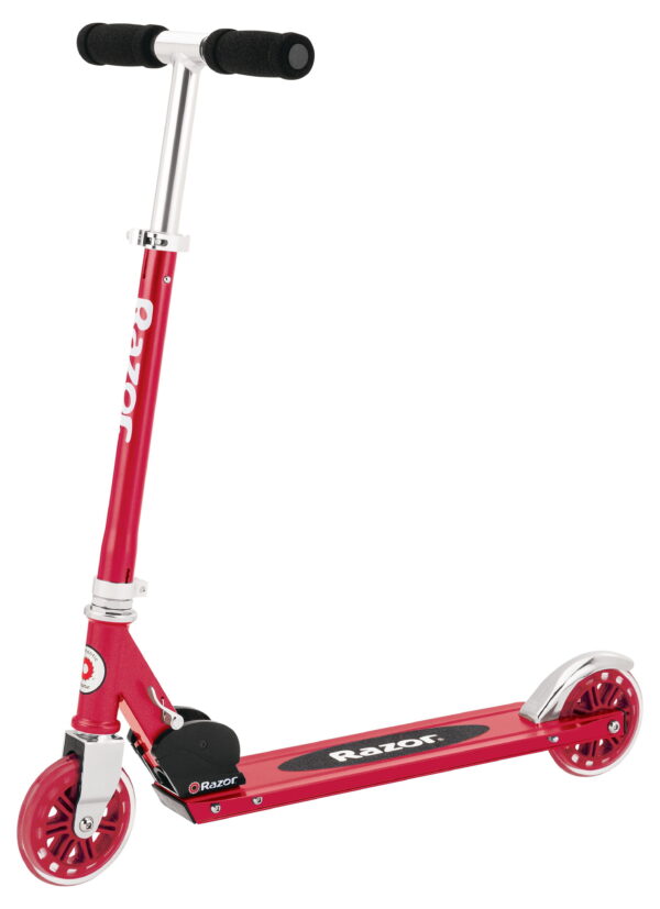 Top quality anodized aluminum construction of the Razor A125 kick scooter is lightweight yet durable Features our original folding mechanism for quick and easy carry, transport and storage between rides Easy-adjust handlebars can be set to the perfect ride height Additional features include rear-fender brake and 120mm urethane wheels T-tube/Deck: Anodized Aluminum Construction Handlebars: Adjustable-height Grips: Foam Downtube: Folding System Wheels: Large Urethane Brake: Rear-Fender No Assembly Required Ages: 5+ Gender: Unisex Max Rider Weight: 143 lb (65 kg) Assembled Product Dimensions: 27.9″ x 12.2″ x 34.8″ Product Weight: 5.93 lb