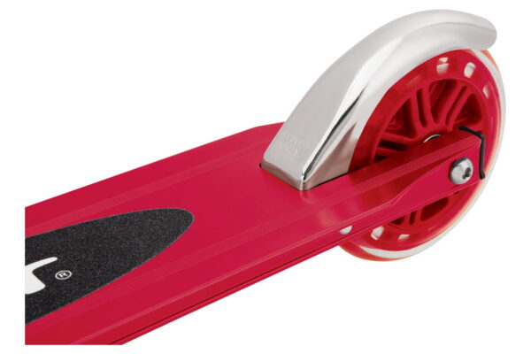 The original Razor A Kick Scooter just got a whole lot better, making it even more fun for kids and teens alike. This Razor A125 Scooter features a bigger 120 mm wheel, as well as a longer deck. Though it’ll never replace the internal combustion engine, the Razor A125 will get your child from point A to point B much quicker than on foot alone, and requires just a few scoots of one’s shoes in the process. It offers a smooth ride over even the roughest terrains. Handlebars are adjustable for comfort and more control.