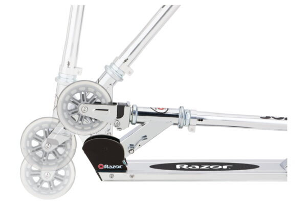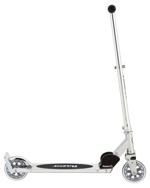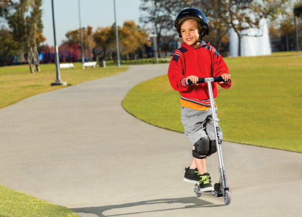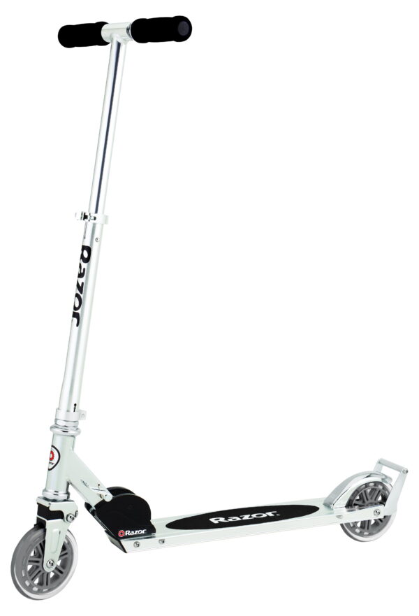 The original kick scooter just got a whole lot better! The updated Razor A3 Scooter offers a new, improved ride for kids and teens alike. Razor combined the traditional aluminum construction with new innovations, such as a spring-less shock system that makes bumpy pavement feel smoother. Plus, the redesigned wheelie bar adds to the stylin’ look and feel. The Razor A3 Scooter has the ABEC-5 high-speed bearings of the original Razor Scooter. Great for speeding around the neighborhood, the scooter has larger 125mm inline-style wheels, high-speed bearings and patented rear fender brake for a smooth in-control ride.