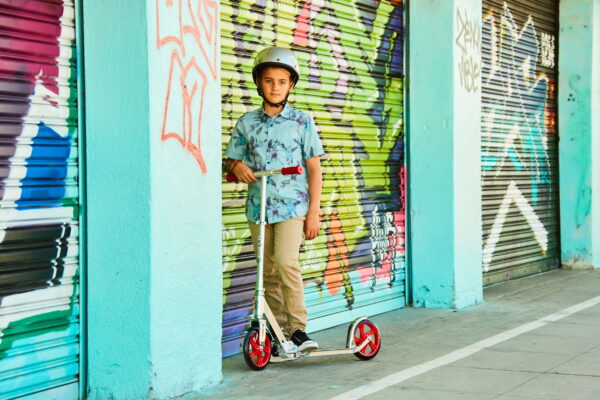The Razor A5 Lux joins a kick scooter line well-known for kids, teens, and even adults. The extra-large urethane wheels and cool profile make for the smoothest ride around. Anodized finish features bold colors and attention-grabbing graphics. Quick and easy to fold and ready to go, the Razor A5 Lux has a super-strong aluminum t-tube and large deck to comfortably support riders up to 220 pounds (100 kg). (Gender: Unisex; Product Net Content: 1 each)