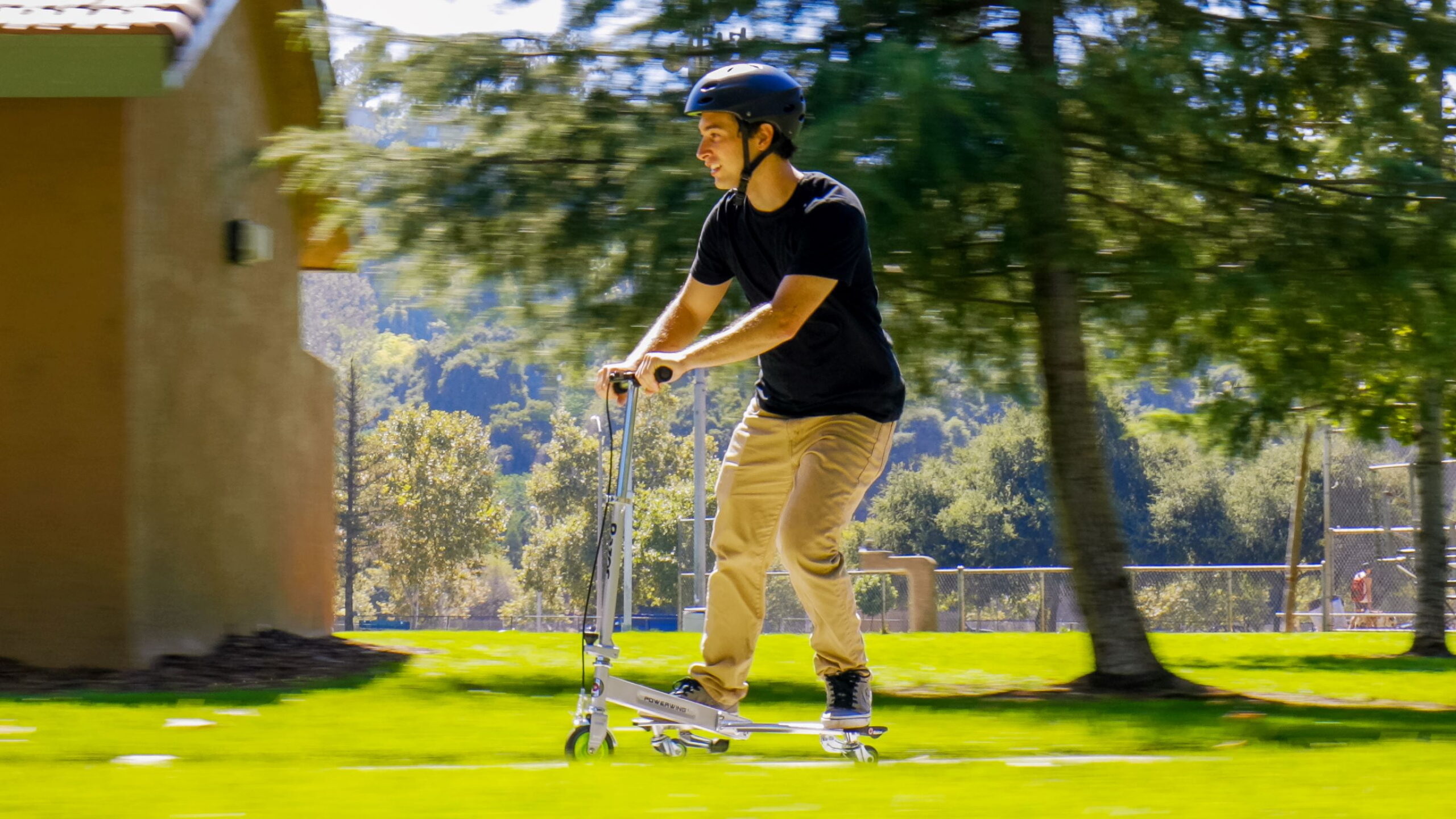 Get ready to spin and drift until the sun goes down with the unique three-wheeled Razor PowerWing DLX. Designed to make your kids childhood more memorable, this innovative caster scooter delivers unlimited side-to-side forward movement. The hand- operated front fender brake and foam grips make stopping and control breeze. This innovative Razor ride is designed for ages 6 and up with a rider weight capacity of up to 143 pounds (65 kg).