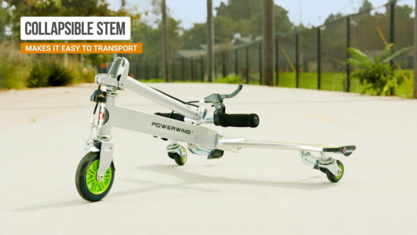 Razor PowerWing DLX Caster Scooter – Silver/Green, 3-Wheeled Drifting Ride-on for Child 6+