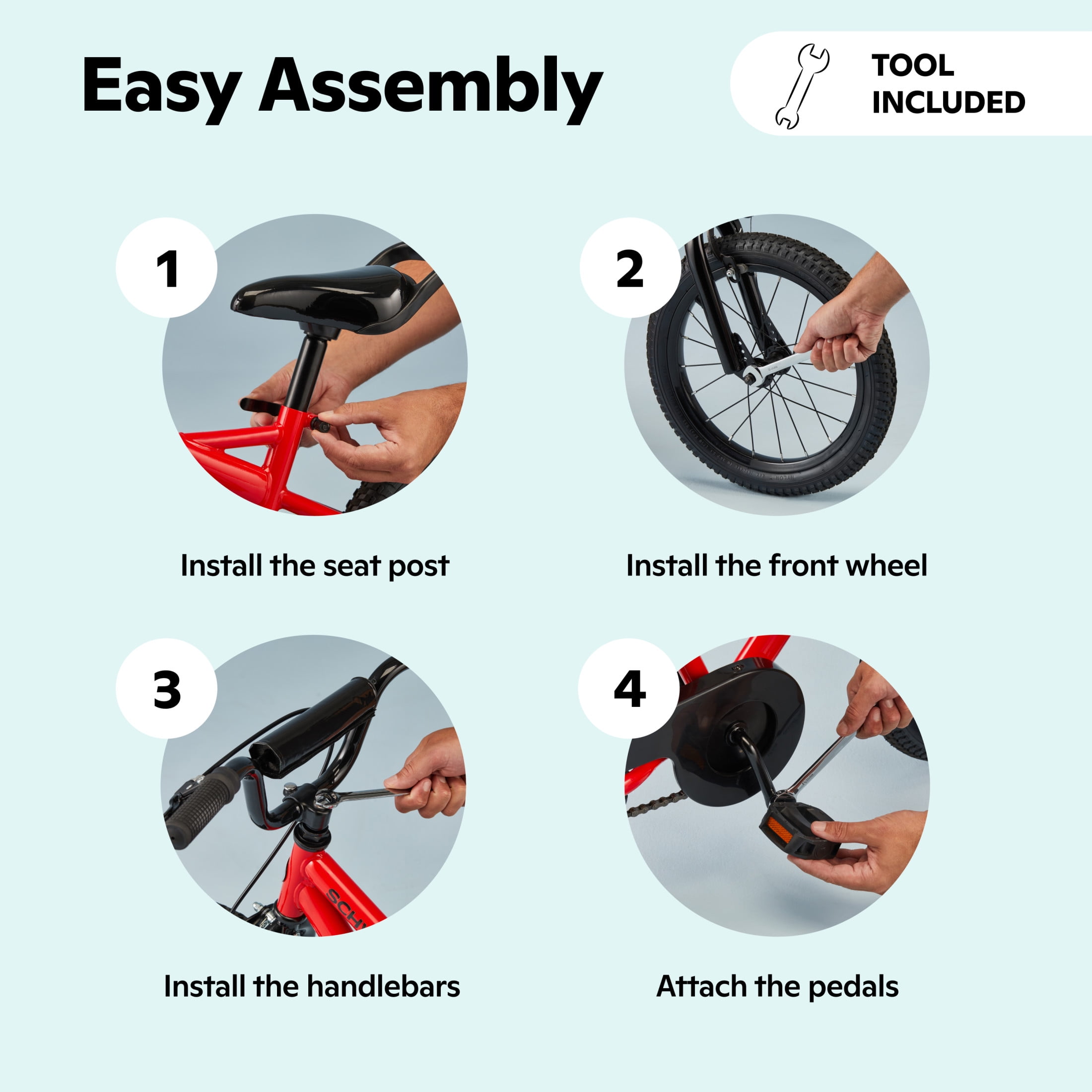 TRUSTED SCHWINN QUALITY: Trusted by parents, designed in Madison, Wisconsin. The Aerostar is a BMX-style kids bike for teaching your little one to ride. 16-inch wheels fit riders 38 to 48 inches tall. MADE FOR KIDS: Growing riders deserve a bike made to fit them just right. The Aerostar incorporates a low standover height to make getting on and off the bike easier. And that makes for a more kid-friendly ride. SIMPLE BRAKING: Stopping is easy with the coaster brake, just pedal backward to stop. GROWS WITH THEM: Tool-free adjustable seat allows the bike to grow with your child. The seat handle makes it easy to lend them a guiding hand or carry the bike. AWESOME EXTRAS: Training wheels come included, plus added protection with the chainguard. Boys love the cool BMX-style number plate. QUICK & EASY ASSEMBLY: Assembles in minutes with the included tool and a simple instruction guide. Theyll be pedaling around in no time! Shop All Schwinn Kids Bikes