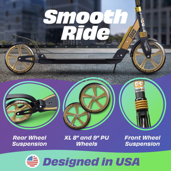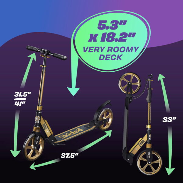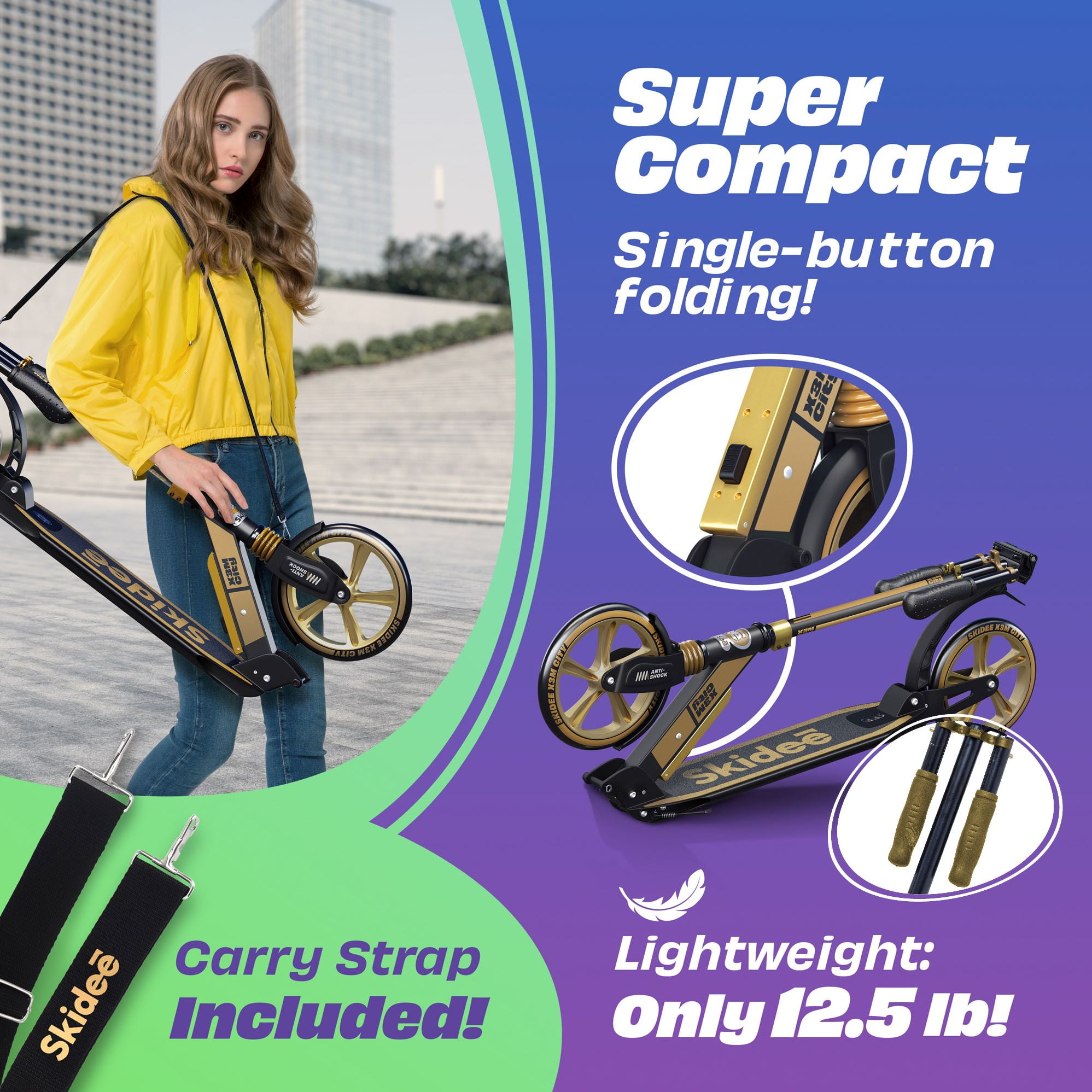 Skidee Scooter for Kids, Teens, Adults, 4 Adjustment Levels, Handlebar Up to 41 Inches, Gold
