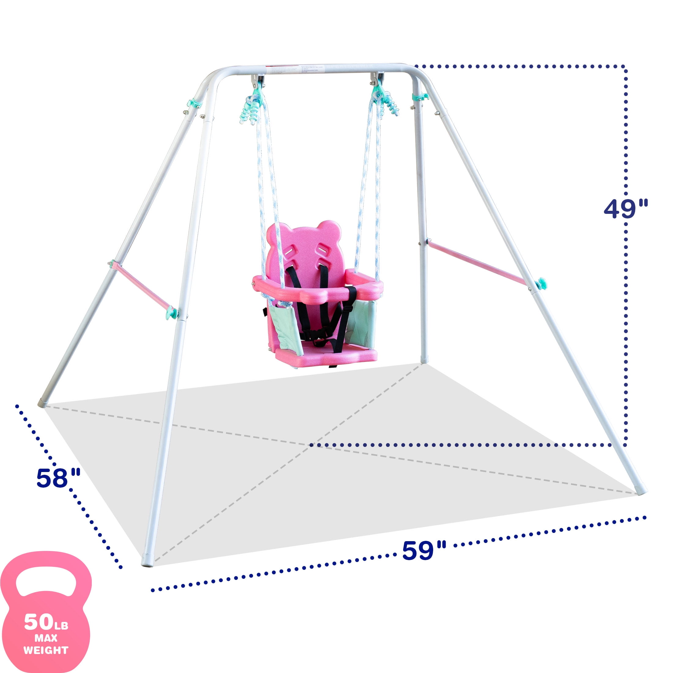 Sportspower Indoor/Outdoor My 1st Toddler Metal Swing with Safety Harness, Foldable Frame