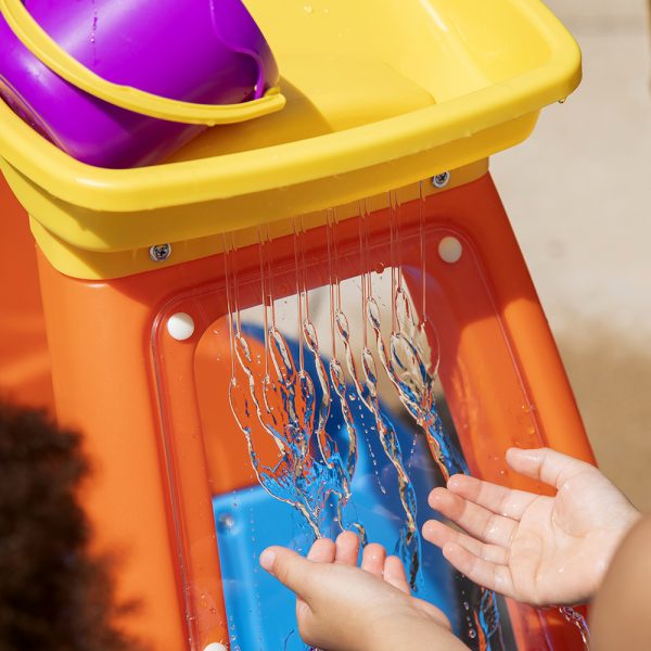 Were goin to the car wash! Little ones cant wait to splash the day away with this kids water table and backyard water park in one! The Car Wash Splash Center is a great way to encourage your toddler to think outside the box and stretch their mind to imagine their own version of a car wash. Pour water into the double-sided top tray and watch the rainfall effect as water cascades down both the windshield and back water maze. This backyard water toy is a great way for kids to mimic their adult role models, from washing the car with the included rag and spray bottle, to filling the gas tank and opening the drain plugs to change the oil when playtime fun is done. Theres even plenty of room for multiple kids to play together, like standing activities at the front and back basins, and sitting inside the car and pretending to drive!