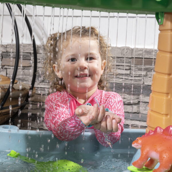 Brand: Step2 Dinosaur Theme for Fun and Learning Includes 13-Piece Playset for Interactive Play Large Table Platform Perfect for Groups Molded In Hole Accommodates an Umbrella Rain Showers Effect for Extra Excitement