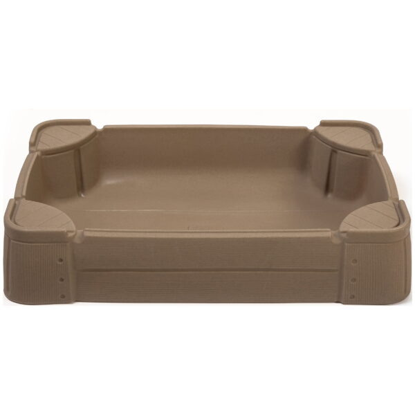 The Step2 Play and Store Plastic Sandbox with Cover in brown provides four molded-in seats and has plenty of space for sand toy storage. The seats provide a place for kids to sit while engaging in fun and entertaining sand play. The outdoor textures and natural tones on this outdoor toddler sandbox will complement any outdoor living space, and includes a lid to keep elements and neighborhood pets at bay. This outdoor toddler sandbox is large enough for four kiddos and the sand capacity is up to 200 lb. The Play and Store Plastic Sandbox is made of plastic but designed to look like a real wood outdoor sandbox and best of all it comes fully assembled! Therefore, unpack the sandbox, add sand (sand not included) and let your little girl or boy get to begin sand play immediately. Lastly, this is a Step2 product which means it comes with a 2 year limited warranty which lets mom and dad know this product is built to last for years to come!