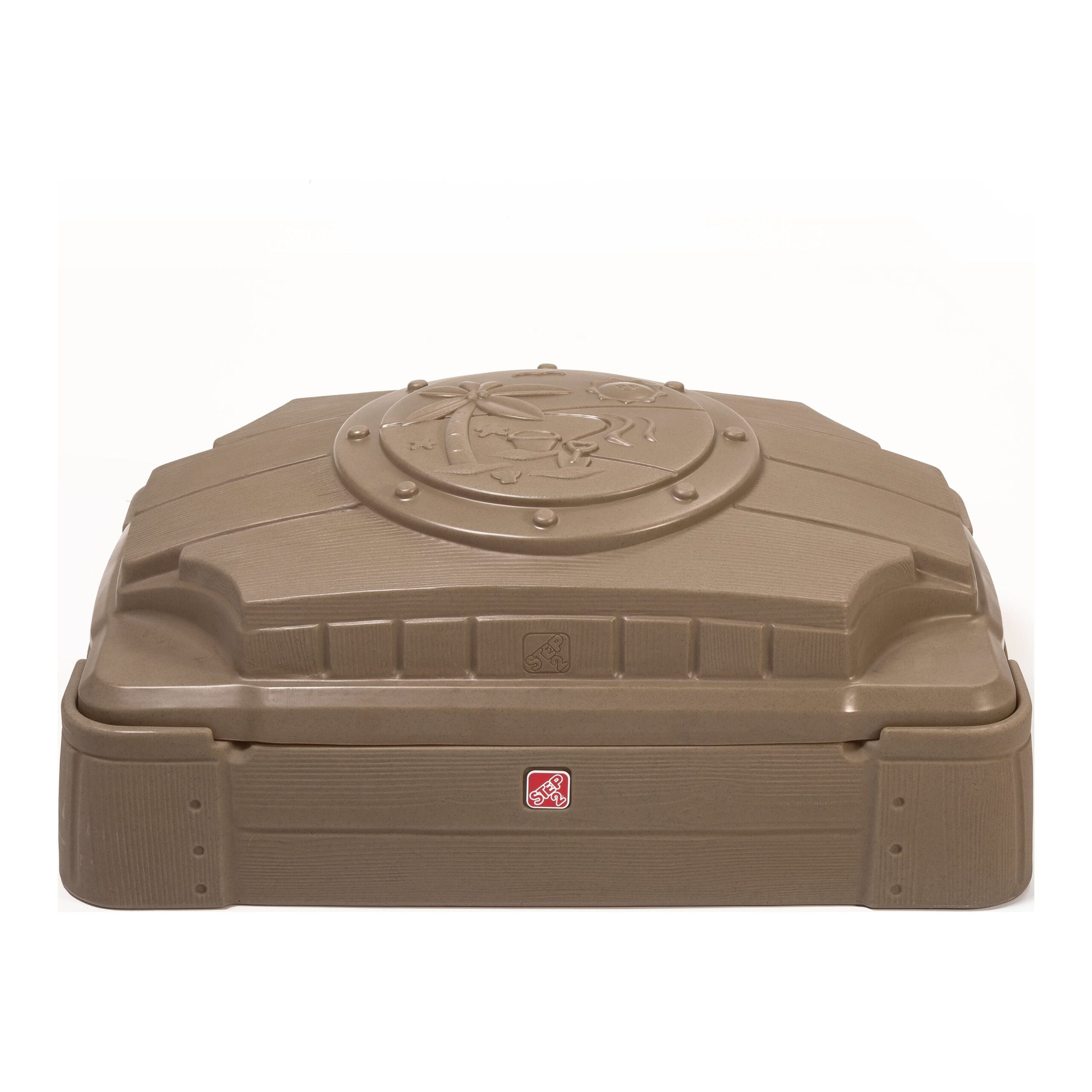 Sweet design Step2 sandbox with cover features 4 molded-in seats Outdoor textures and natural tones Complement any outdoor living space Includes lid to keep elements and pets at bay Comes fully assembled Holds 200 lbs of sand (not included)