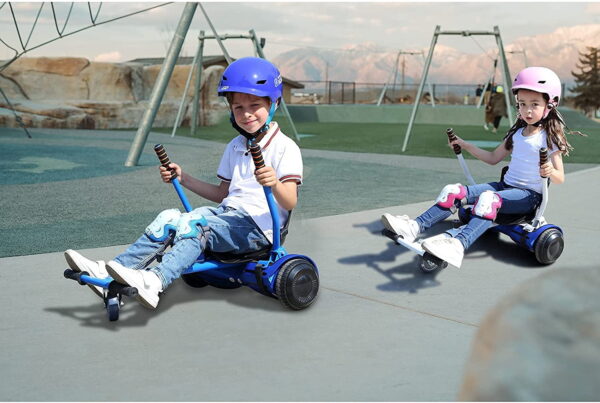 WonderWheels Hover Kart Go Kart Adjustable Attachment for 6.5″ Hover-Rider Buggy – Two steering handles make the ride secure and it is simple to operate easily, this unique frame will give your kids an excellent experience and can let them unplug from their screens and provide a fun way to build up their muscles and practice essential motor-skills. It is an amazing ride for your family to enjoy, it’s really easy to install and smooth riding. This will turn any Hover-Rider into a hoverbuggy! Just think you can have your very own dune buggy and cruise around the neighborhood! #1 Hover-Rider go kart aka Hover-Rider go cart!