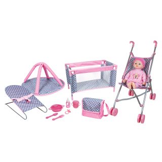 Original price was: $40.99.$34.02Current price is: $34.02.Add to cartWhat little girl wouldn’t want this multi piece doll set? Comes with an Umbrella Stroller, Travel Bed, Play Gym, Bouncer, Bag, Diaper and other accessories. Fits up to 16″ Baby doll . **Doll not included. Multi piece set. For Baby Dolls as big as 16″ tall. Umbrella Stroller, Travel Bed, Play Gym, Bouncer, Bag, Diaper and other accessories.