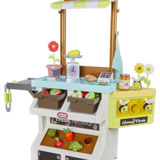 Original price was: $55.45.$47.13Current price is: $47.13.Add to cartLittle Tikes realistic 3-in1 Garden to Market Table is inspired by those wonderful stands at the Farmers Market, combined with a side grill. This toy market and cooking playset comes with realistic accessories to make playtime creative, and children and kids imaginations thrive. Multiple kids can play at once and take turns planting, growing, cooking, selling, buying and enjoying the delicious goodies. The 30+ included and interactive role play accessories elevate pretend to a whole other level and allow kids to really see themselves in a variety of roles. Toddlers and kids will love helping the bees pollinate and make honey, planting and growing fruits and veggies and then grilling up some delicious pretend meals. They can then weigh the produce on the scale, take credit card payments and make their customers very happy. Your toddlers and kids 2+ can also personalize the pot the flowers go in. There is plenty of storage in the bins so kids can store all the accessories during and after playtime. It also makes clean up very easy. Celebrate healthy eating with this fun garden and market playset.