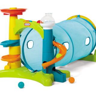 • Explore and grow with the Little Tikes 2-in-1 Activity Tunnel. Featuring 2 ways to play, this tunnel will get kids crawling and engaging in ball play. Crawl through the tunnel and play peekaboo through the side windows. The activity center features two ball drop towers where kids can drop colorful balls and delight in where they roll! The tunnel even plays silly sounds and music. The durable, flexible-fabric tunnel can be moved in different ways, and it collapses for easy storage. The 2-in-1 Activity Tunnel encourages crawling, reaching, grasping, and color recognition. It includes plastic balls to get the good times rolling. Recommended for ages 1 3 years.