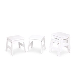Original price was: $44.99.$32.84Current price is: $32.84.Add to cartHave a seat (or four)! This set of four sturdy wooden stools is perfect for use around an activity or play table and makes a great addition to any kids play space. Available in white, natural (light woodgrain), and two-tone white and natural, the 11-inch-high stools wipe clean with just a damp cloth and fit any home decor. A cutout handle in the seat makes these easy to carry from room to room, and they are designed to stack for convenient storage. Stools are sized for kids three to eight years old, up to 100 pounds.