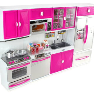 Original price was: $57.99.$46.97Current price is: $46.97.Add to cartDescription: This modern kitchen play set comes with a doll and appliances that light up and make sounds just like an actual kitchen! The cabinets, oven, and refrigerator can be opened. The toaster also has a switch that can be pressed to mimic an actual toaster. Specifications: 66 x 35.2 x 8.5 CM